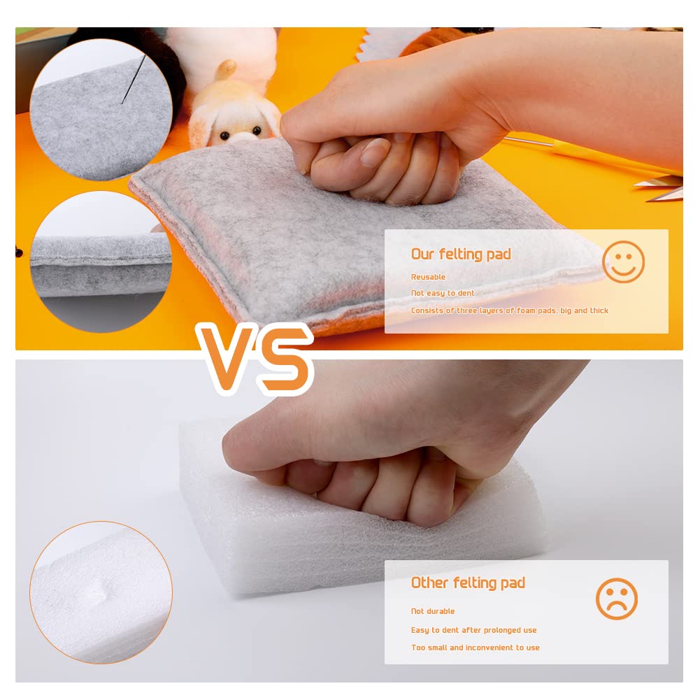 - 【Advanced Needle Felting Pad】This felt needle pad consists of three layers of thick soft sponge pads, our gray needle pad is less prone to collapse than ordinary sponge pads, the soft outer felt layer and dense sponge ensure durability, the felt needle pad reusable, very eco-friendly, easy to use and carry.