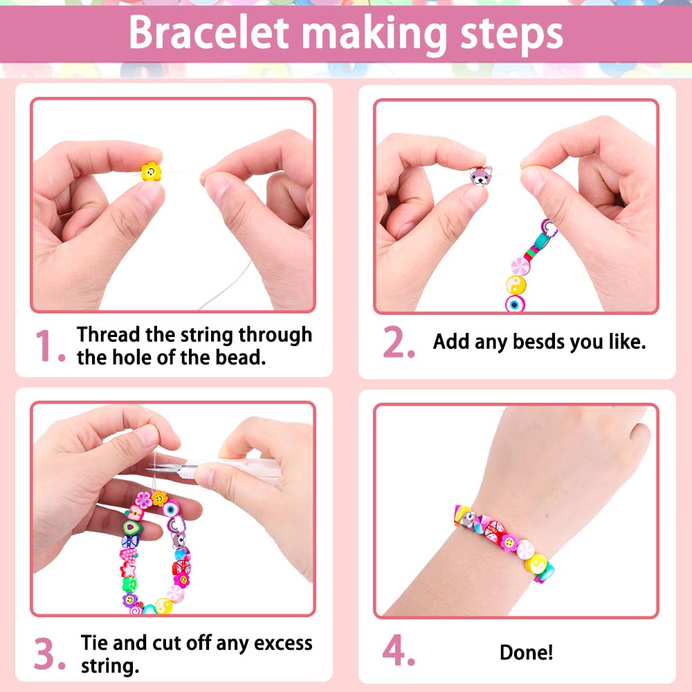 - Bracelets Making Kit--Clay beads bracelet making kit is an ideal present for friends, you can also make unique ornaments for them, they will definitely love it! Perfect for DIY crafts with kids, which will improve their creativity, imagination, color perception, hands-on ability and concentration.