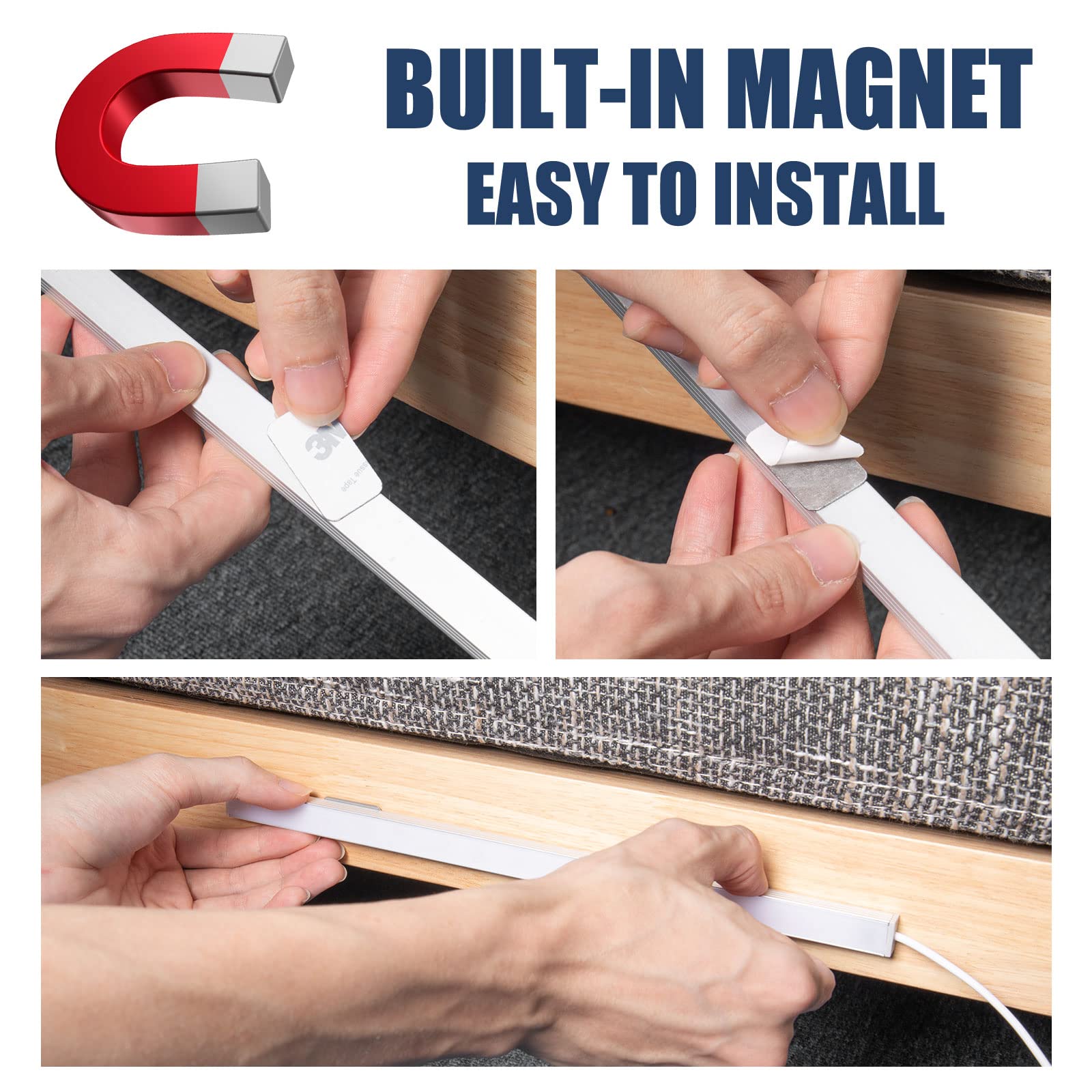 - 【Health Eye Protection Lamp】USB Powered under cabinet lights driver adopts microcomputer controlled DC drive, no flicker, and protects people's eyes. Never worry that reading under the light will hurt your eyes. We all call it a health and eye protection lamp.