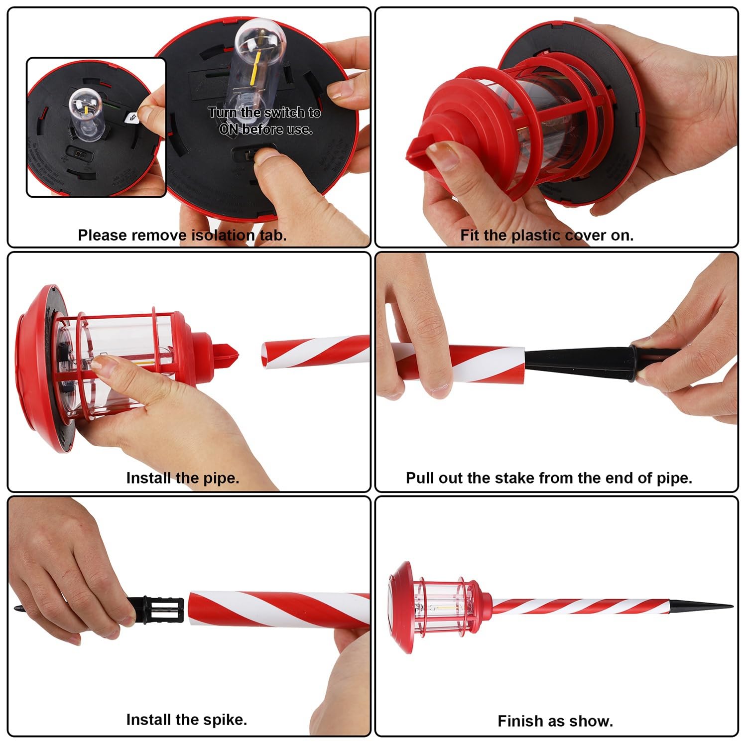 - DUAL USE OUTDOOR CHRISTMAS SOLAR LIGHTS: 6 pack solar powered decorative candy canes garden lights powered by solar, each with a large warm white LED Edison bulb, they are the perfect decorative outdoor lighting ensure a great effect when the light glows in the dark. Bright warm white LED and lampshade reflector which allow light to flood the space, whilst creating beautiful shadow patterns on the ground