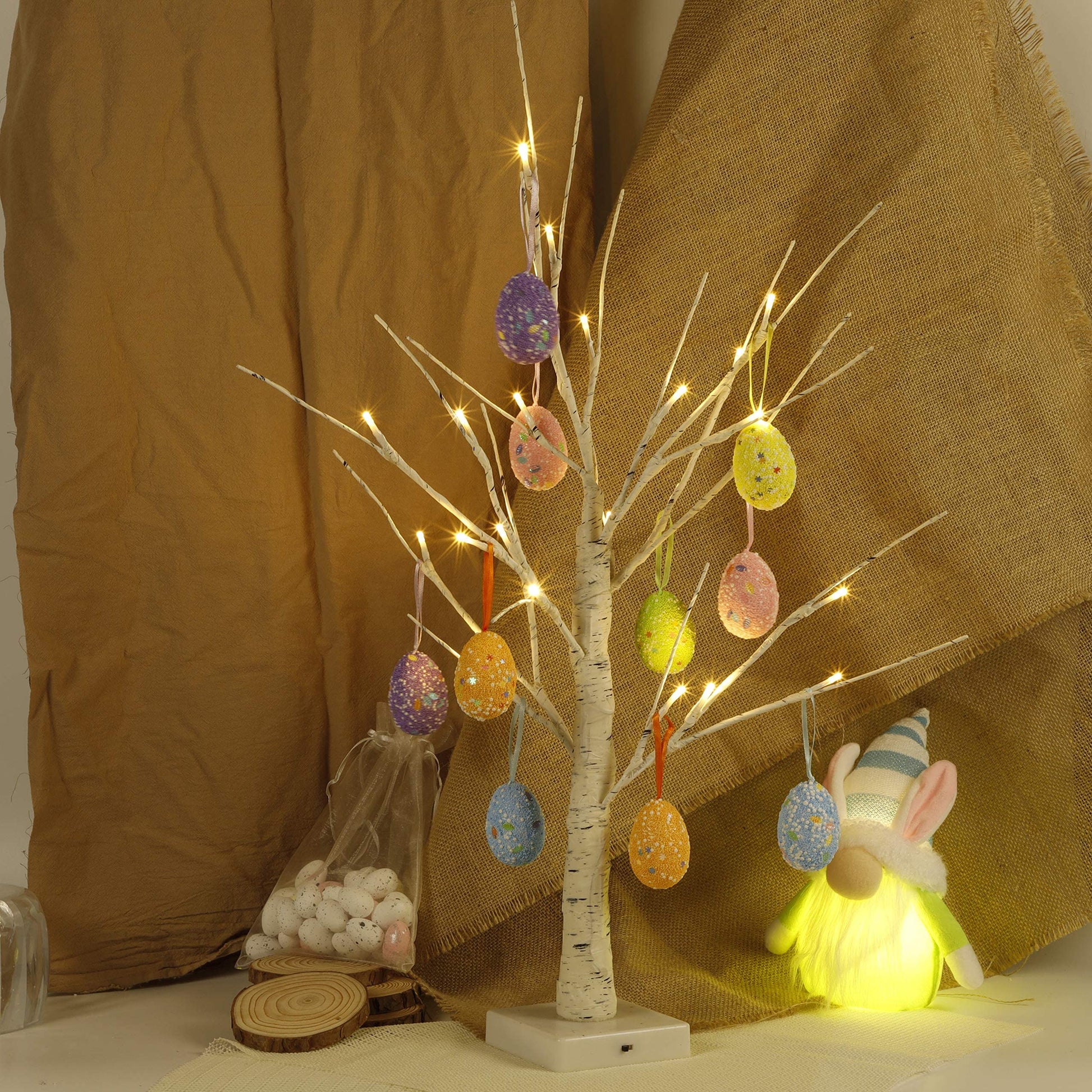 Easter Decorations kemooie 24 Inch Pre-lit White Birch Tree with 10 Hanging Easter Egg Ornaments, 24 Led Lights Battery Operated Easter Table Centerpiece for Party Birthday Home Spring Decoration