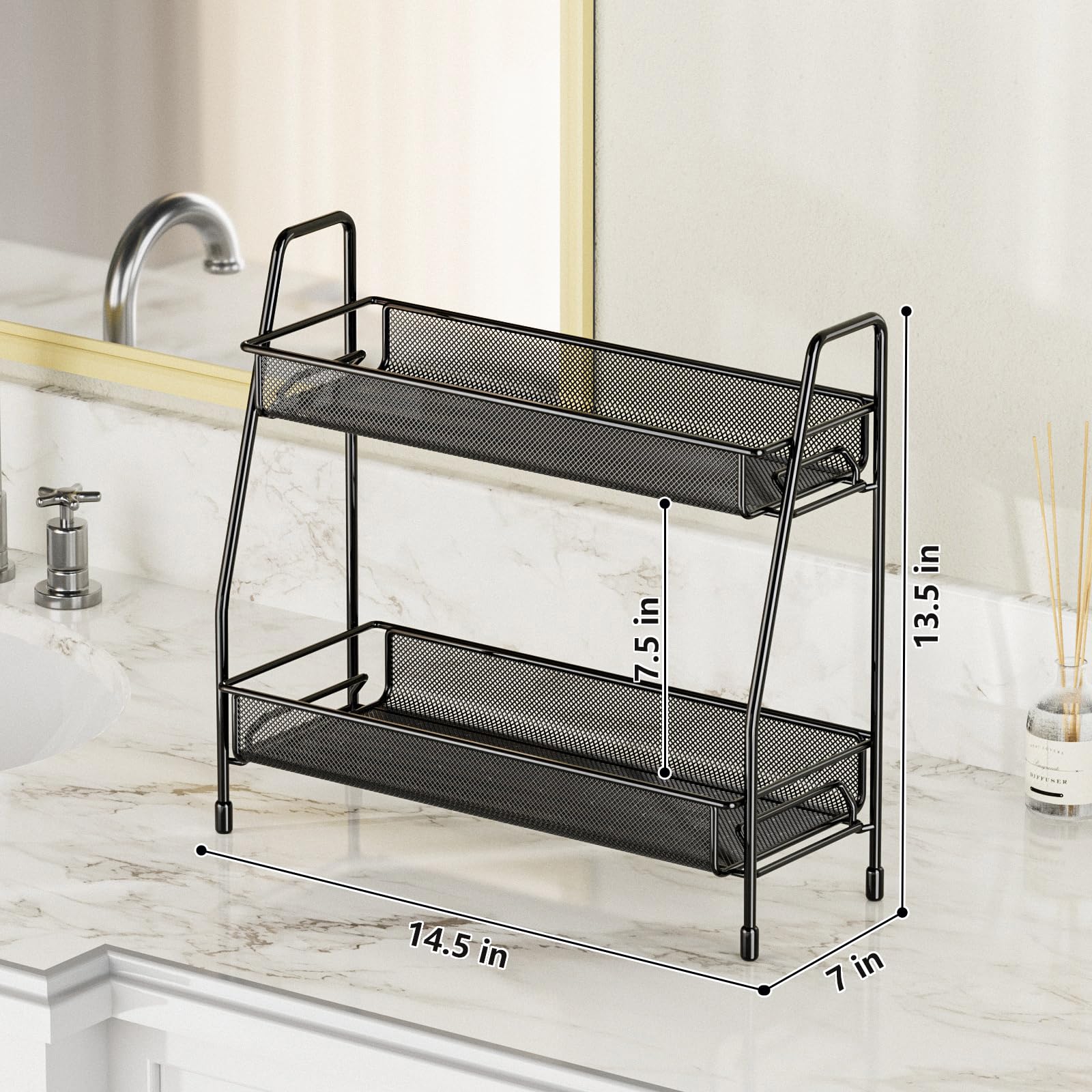 - 【Multi-Purpose Use】Our mesh organizer shelf is a must-have for any time home organization,can be used as a bathroom countertop organizer,bathroom vanity organizer,cosmetic organizer shelf,perfume organizer shelf,under sink organizer,kitchen spice rack,coffee station organizer,washroom desktop organizer,office desktop organizer,snack storage rack.Adapt to different scenes for your choice.