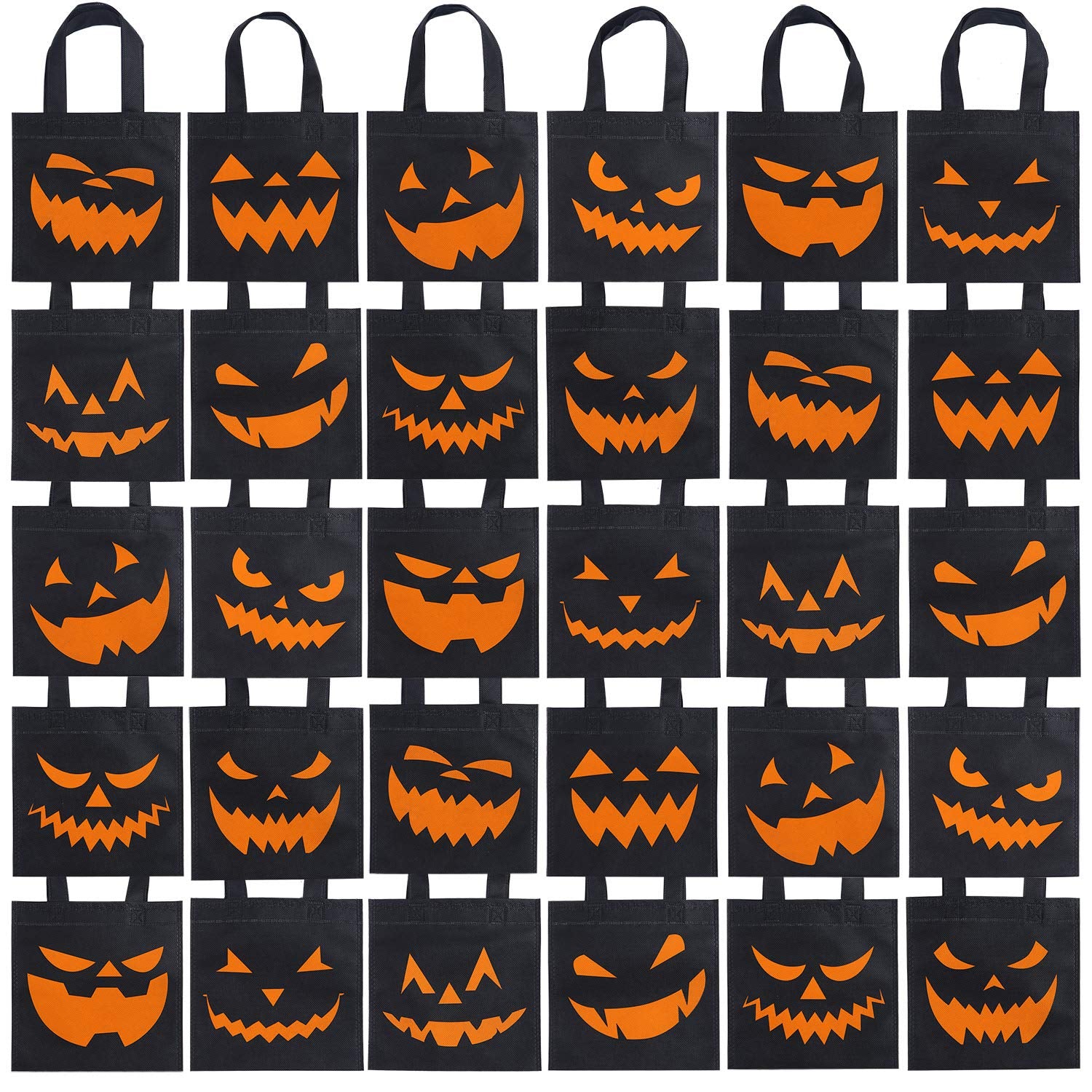 Elcoho 30 Packs Halloween Trick or Treat Non-woven Bags Pumpkin Bag Party Goody Tote Bags Gift Bag with Handles Party Favors, 8 by 8 Inches, 10 Styles