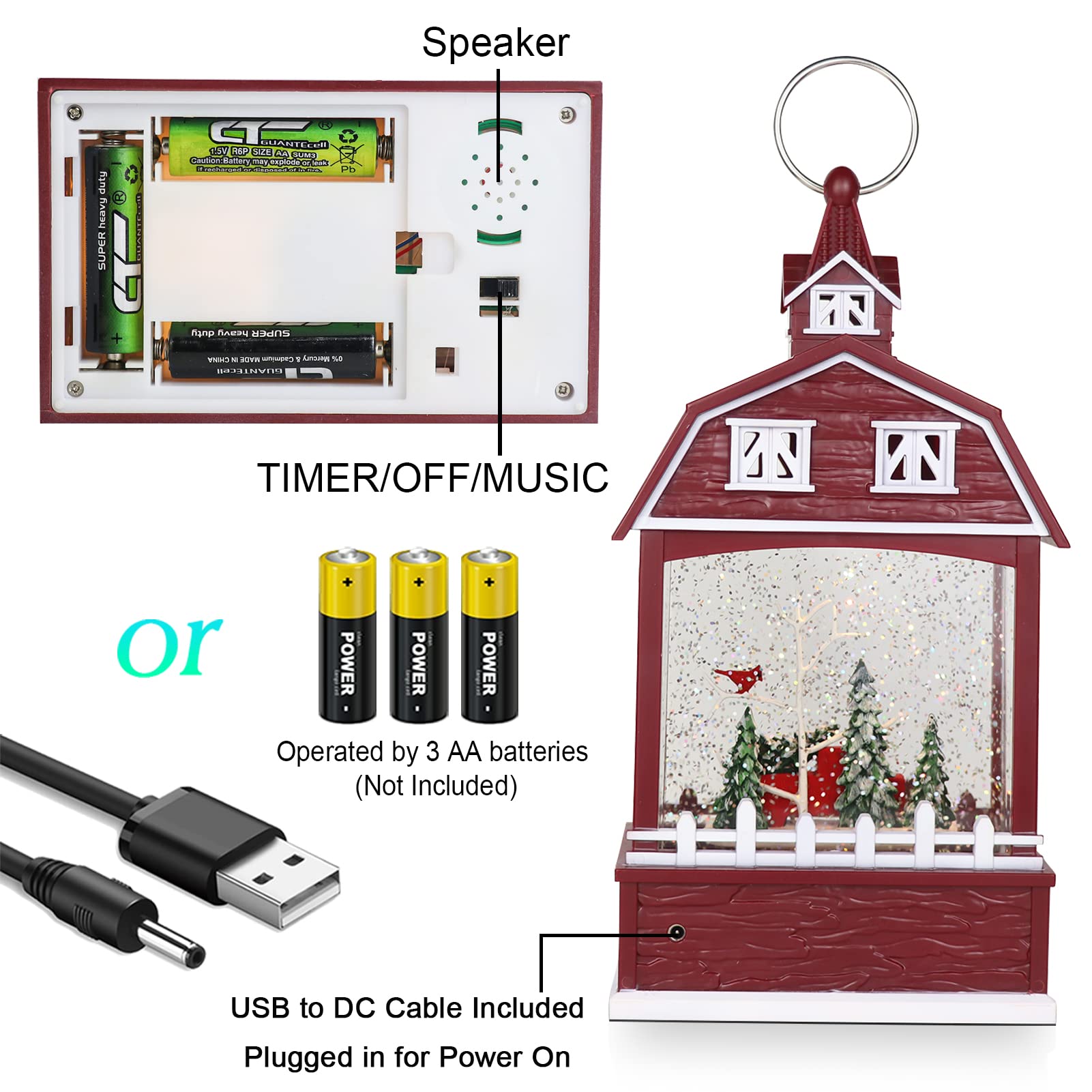 - ⛄ TWO POWER MODES: With the included USB to DC cable, the snow globe lantern can be operated without batteries, which can save you a lot on batteries. On the other hand, you can also power the lantern with 3 AA batteries so that you can place it at any place that you want to add warm ambiance.