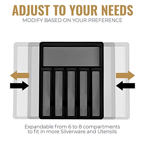 ELTOW Expandable Silverware Drawer Organizer, 8 Compartment Non-Slip & Adjustable Silverware Trays For Kitchen Drawers, Kitchen Organization for Utensils, Cutlery, Flatware Storage - Black