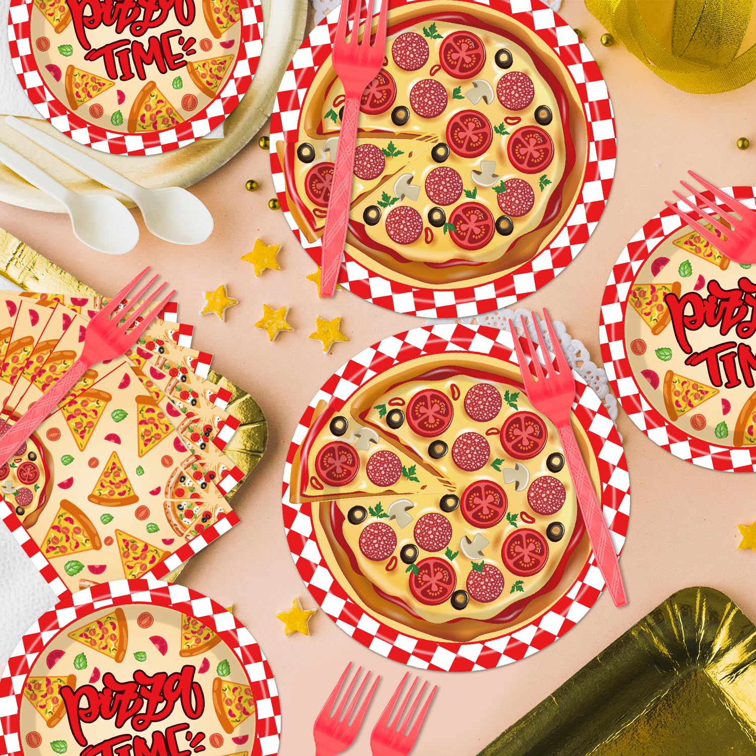 EngoEagle Pizza Plates and Napkins Party Supplies - 96PCS Pizza Birthday Party Decorations Pizza Time Pizza Themed Disposable Tableware Set Serves 24 Guests