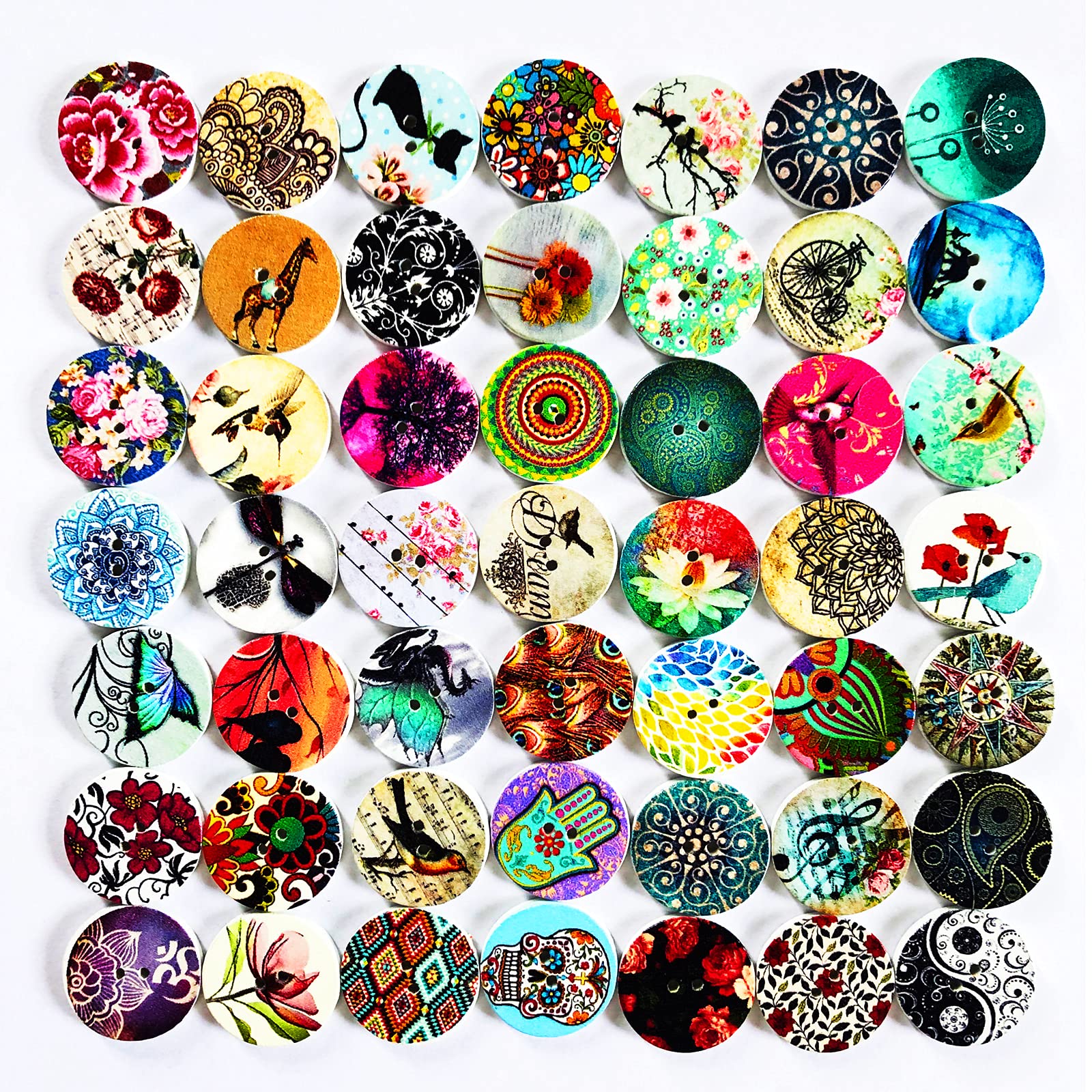 - ✿ SAFE MATERIAL: The wooden craft buttons are made of natural wood, durable and safe, non-toxic and odourless, the color and pattern is steady, will not be faded out easily. There is no bad smell, no harm to the body.