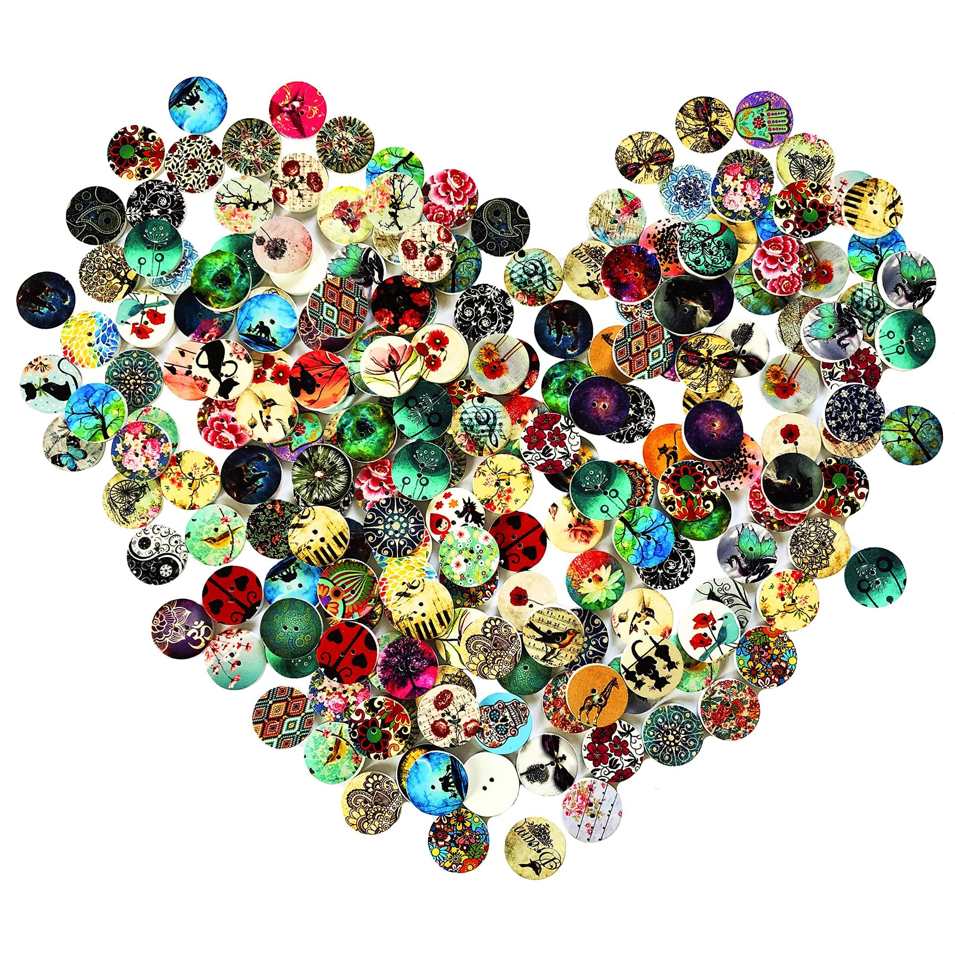 Details: Esoca 200 PCS Wood Buttons, Vintage Wood Buttons with 2 Holes for DIY Sewing Craft Decorative