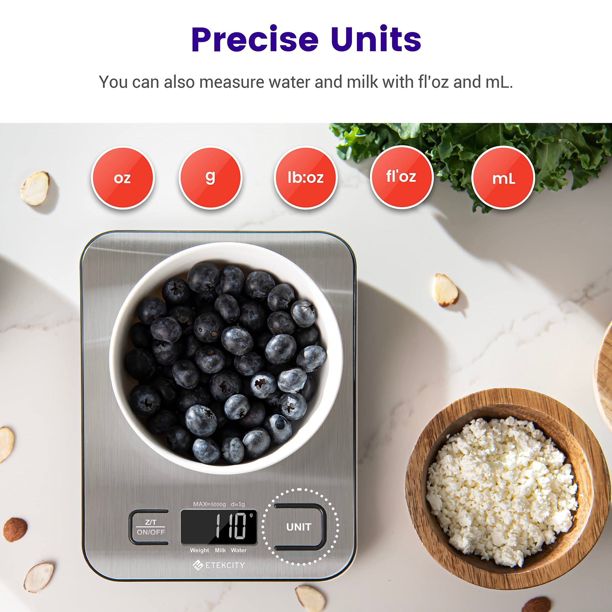 Etekcity Food Kitchen Scale, Digital Grams and Ounces for Weight Loss, Baking, Cooking, Keto and Meal Prep, LCD Display, Medium, 304 Stainless Steel