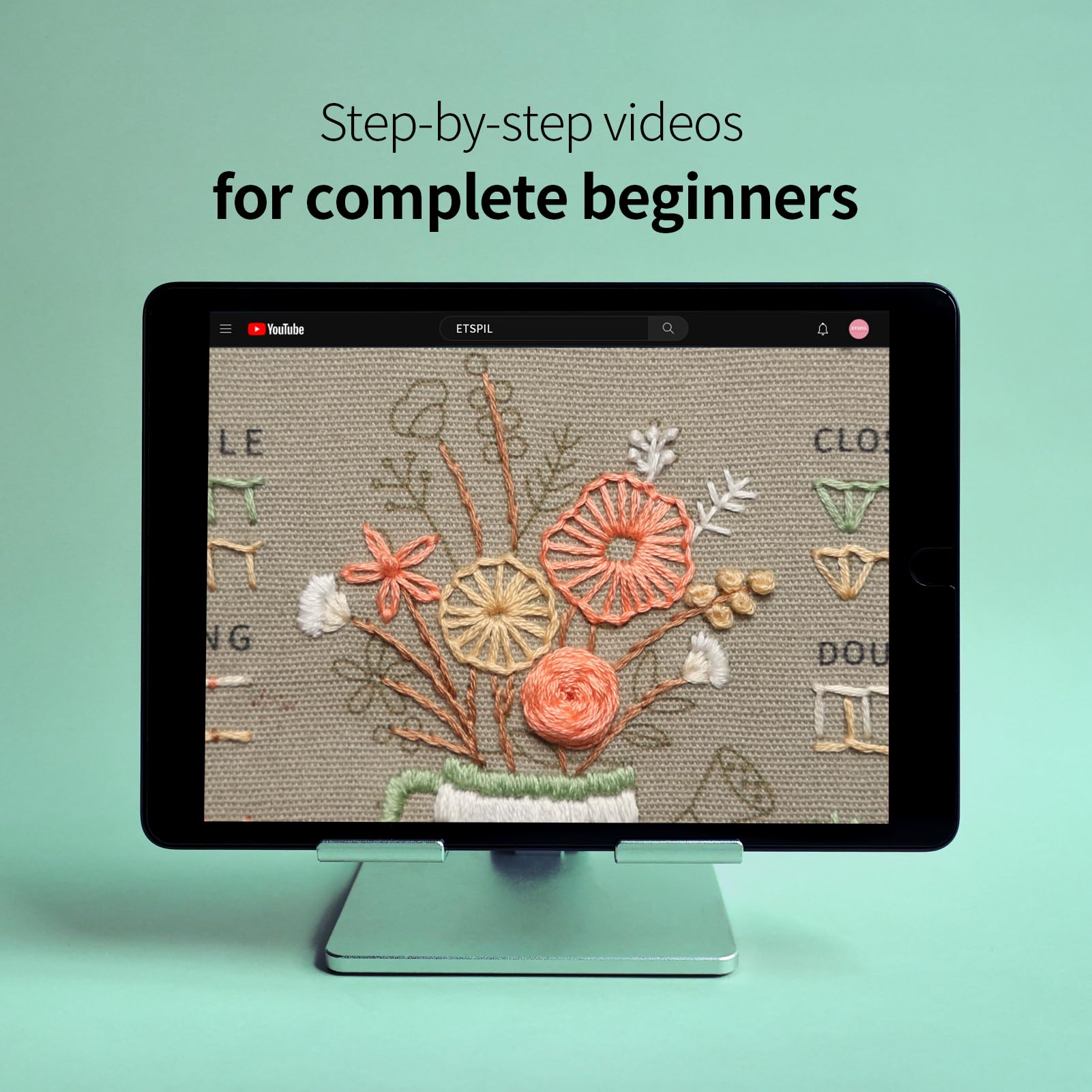 - LEARN 33 POPULAR STITCHES: Follow our 2-hour step-by-step video course and practice everything from backstitch to French knot at your own pace.
