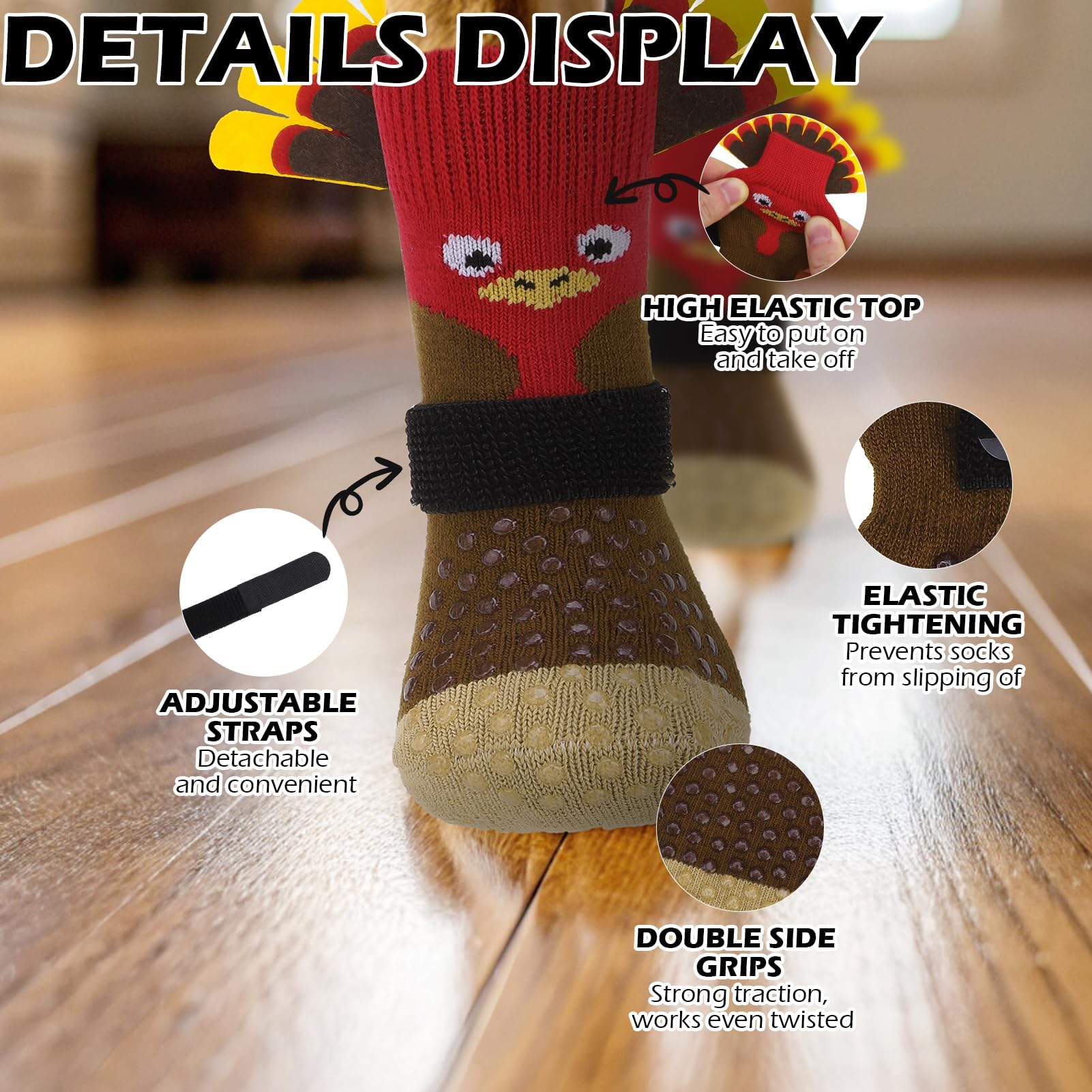 Thanksgiving Anti Slip Dog Socks to Prevent Licking Paws,Boots & Paw Protectors with Grippers,Doggie Booties for Hardwood Floors for Small Medium Large Senior Dogs Lifelike Costume Turkey L