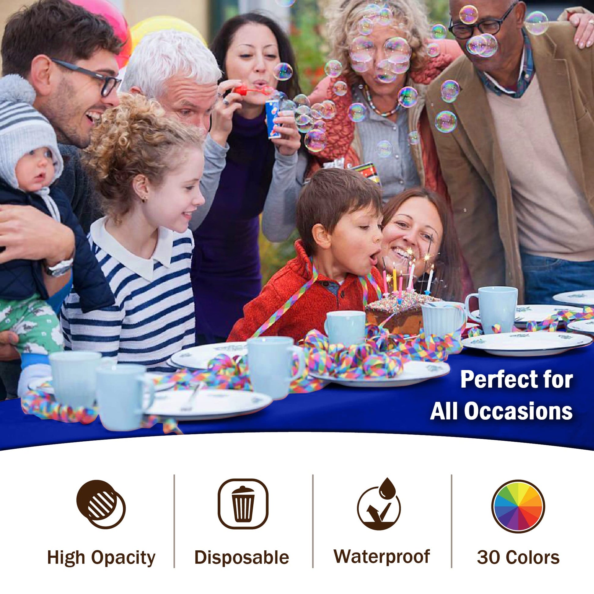 - HIGH OPACITY: covers any table with minimal transparency. Great plastic tablecoth for parties, weddings, holdiay party, thanksgiving dinner, bbq, and any other color themed event.