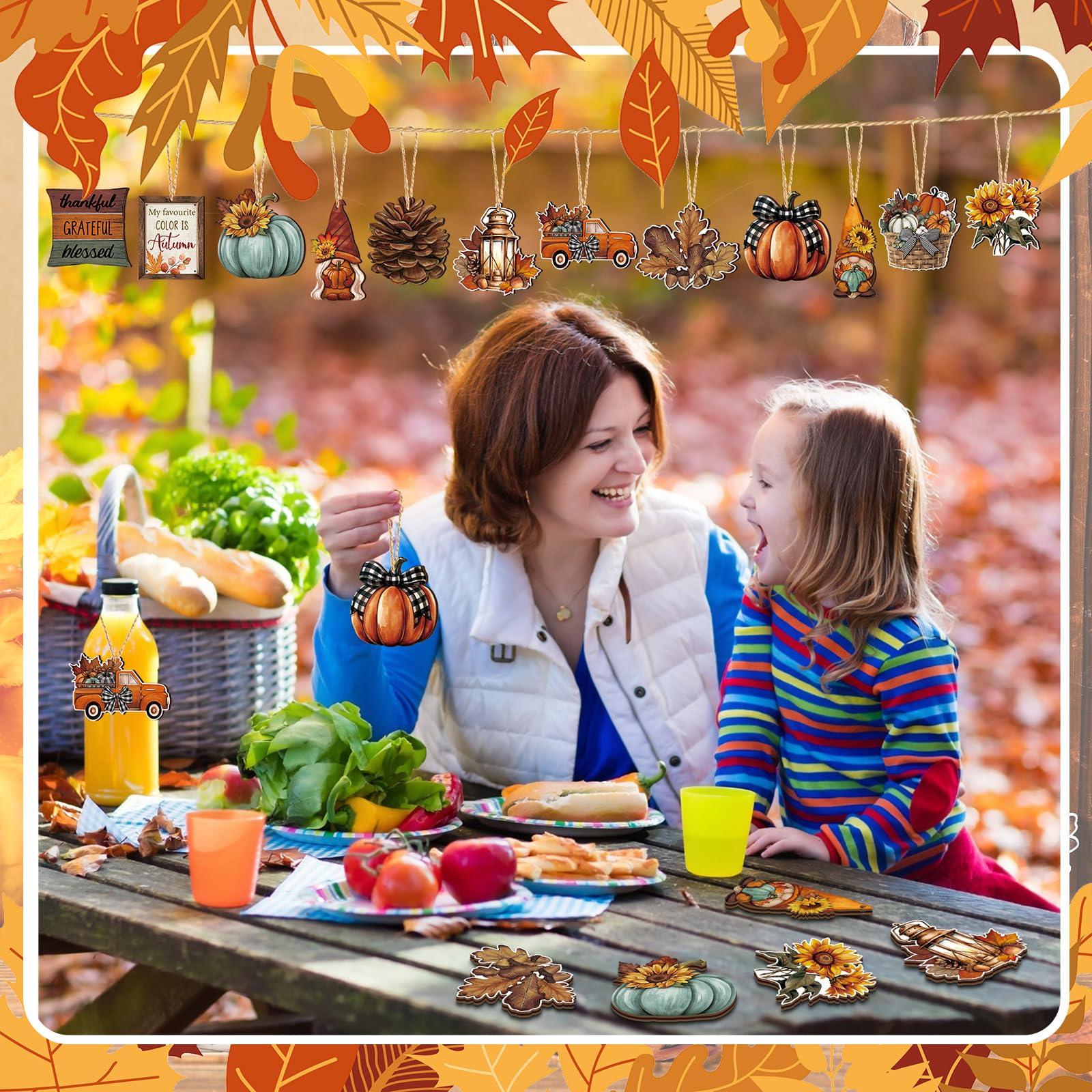 FairySandy 36 Pcs Fall Tree Decorations Thanksgiving Gnomes Ornaments for Tree Wooden Hanging Ornaments Pumpkins Leaves Flowers Cutouts Autumn Decorations for Holiday Party Supply(Classic Style)