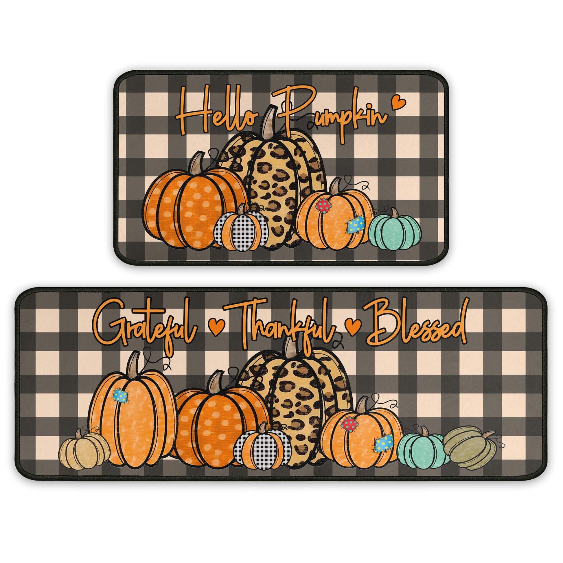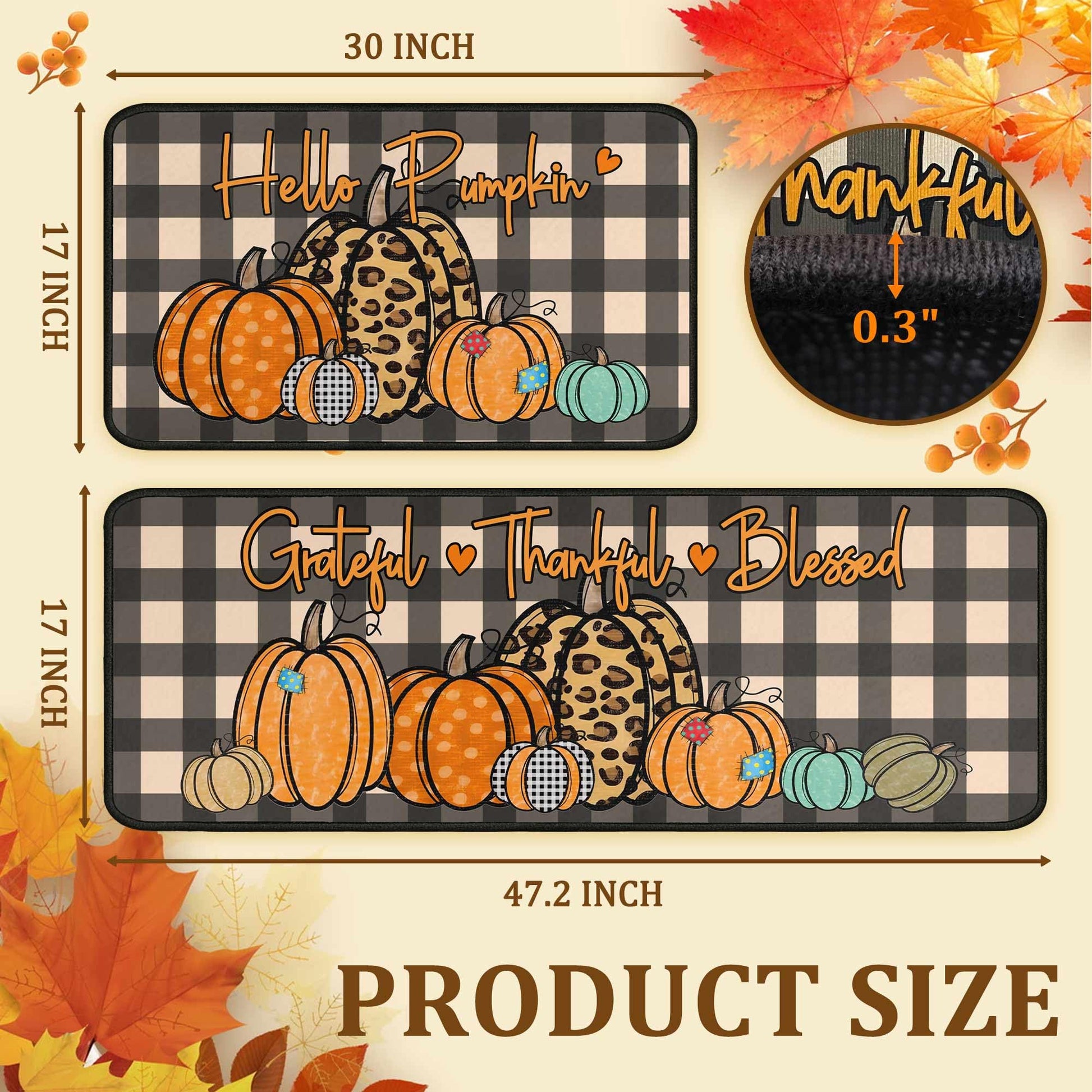 Fall Kitchen Rugs and Mats for Floor, Fall Decorations for Home, 2 Pcs Non-Slip Backing Pumpkin Mat, Autumn Decor Thanksgiving Kitchen Rug Sets with Runner 17"x47.2"+17"x30"