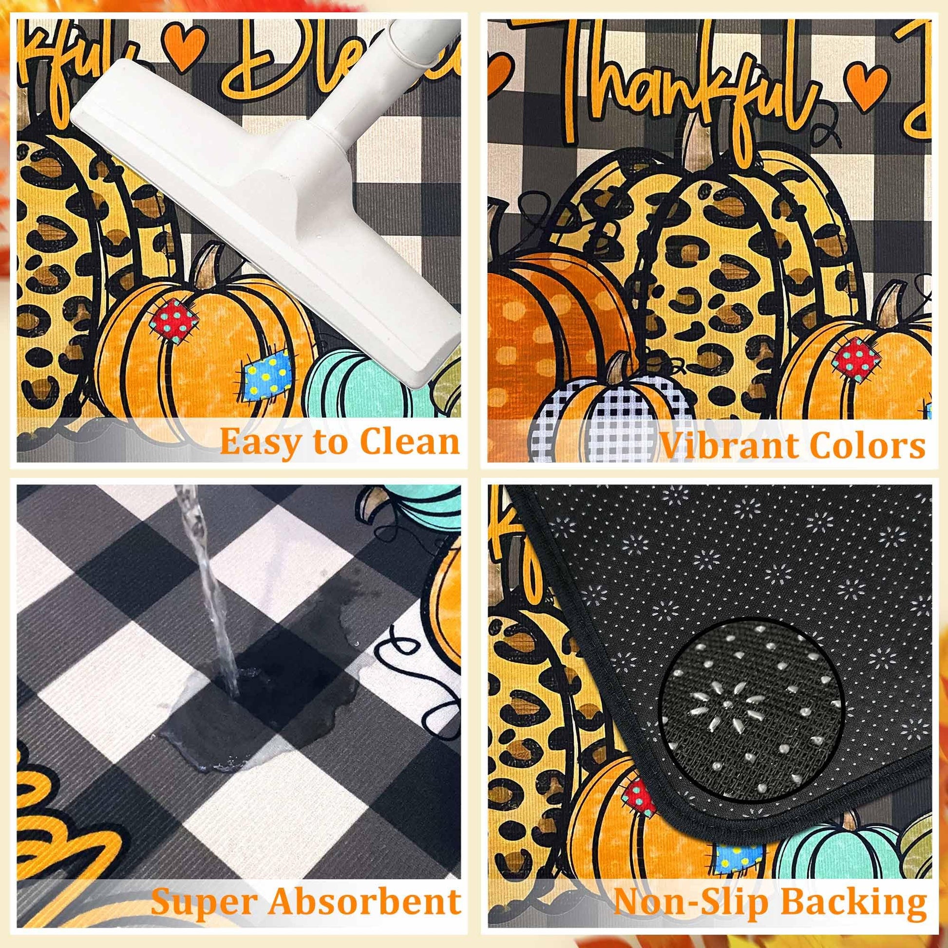- Material: These fall kitchen mats for floor are made of high-quality polyester fiber, non-skid backing, durable, not fade, and will last for long time. Absorbs splashed water and oil while cooking, and dries quickly, protecting your kitchen floor from stain.