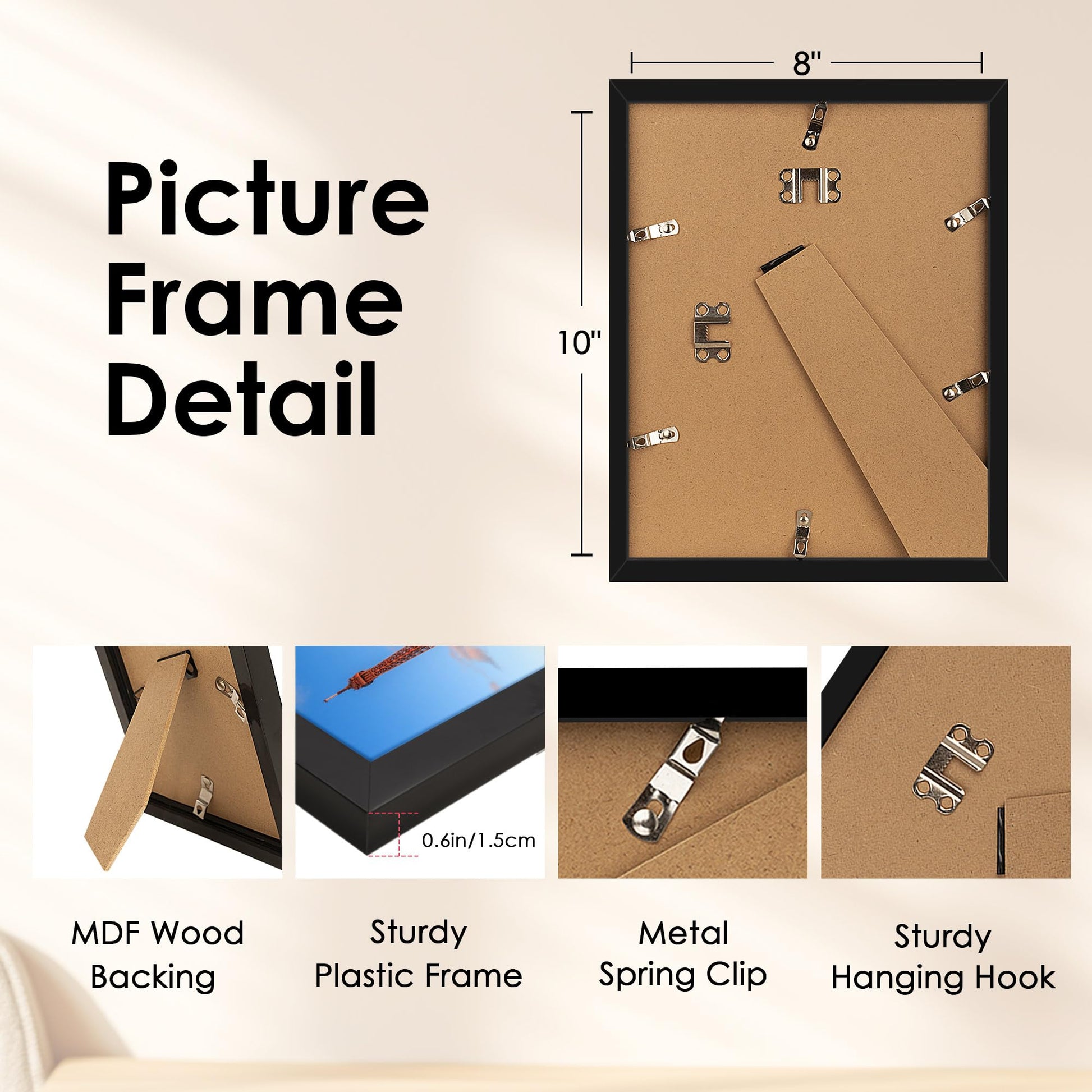 - Versatile Display: The 8x10 picture frames can showcase 8x10 photos without a mat, or with a mat, they can accommodate 5x7 photos, allowing you to layer and enhance the visual appeal of your pictures.Cherish your special memories and create a personal gallery that reflects your unique style and personality.
