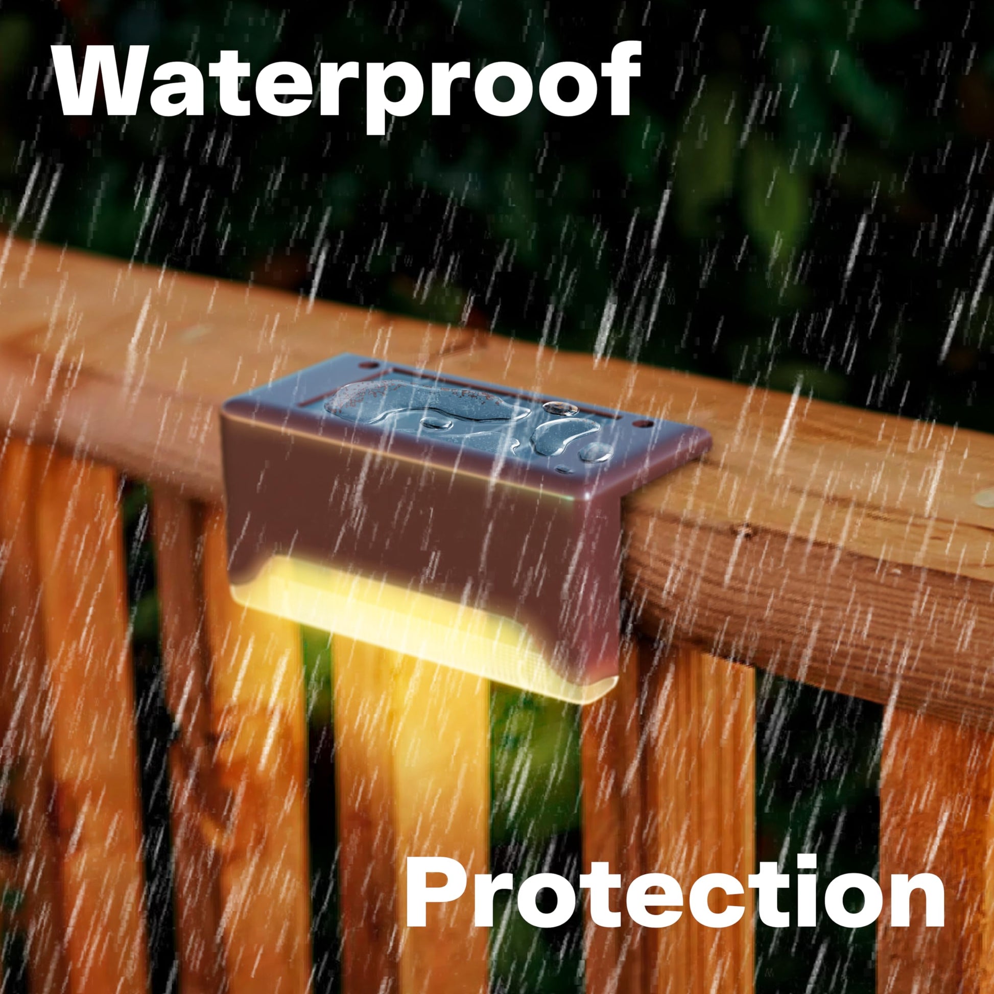 - Waterproof & Durable. Constructed from durable ABS plastic, these solar outdoor lights can withstand various weather conditions and are not easily deformed by wind, snow, or rain. The solar panels have been sealed with waterproof glue, ensuring they remain functional even after severe storms.