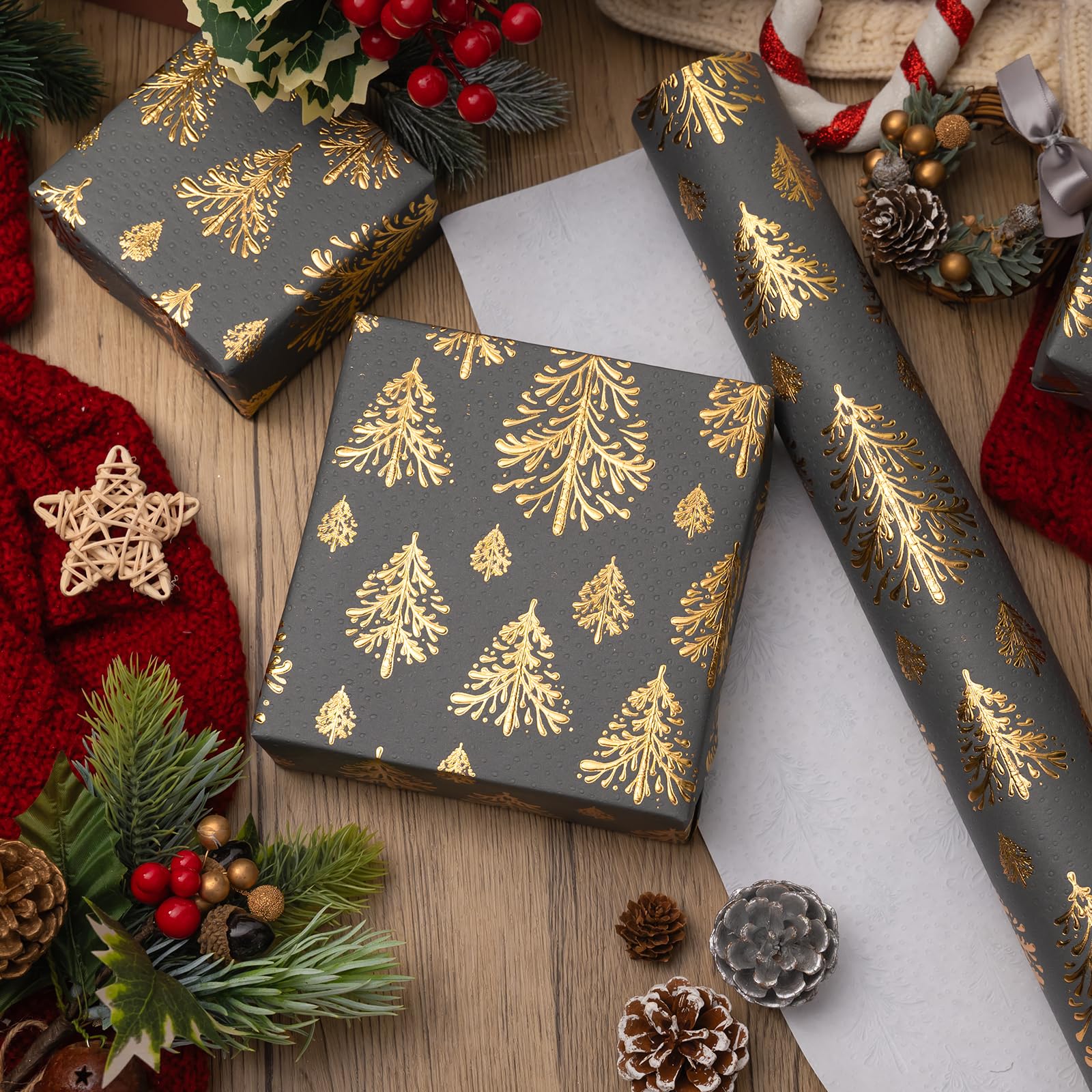 - Add Christmas Atmosphere: Luxury embossed gift wrap with Christmas Trees design decorate your Christmas presents. When you decorate your Christmas scene, match FLYHILL wrapping paper,it adds a stronger Christmas atmosphere