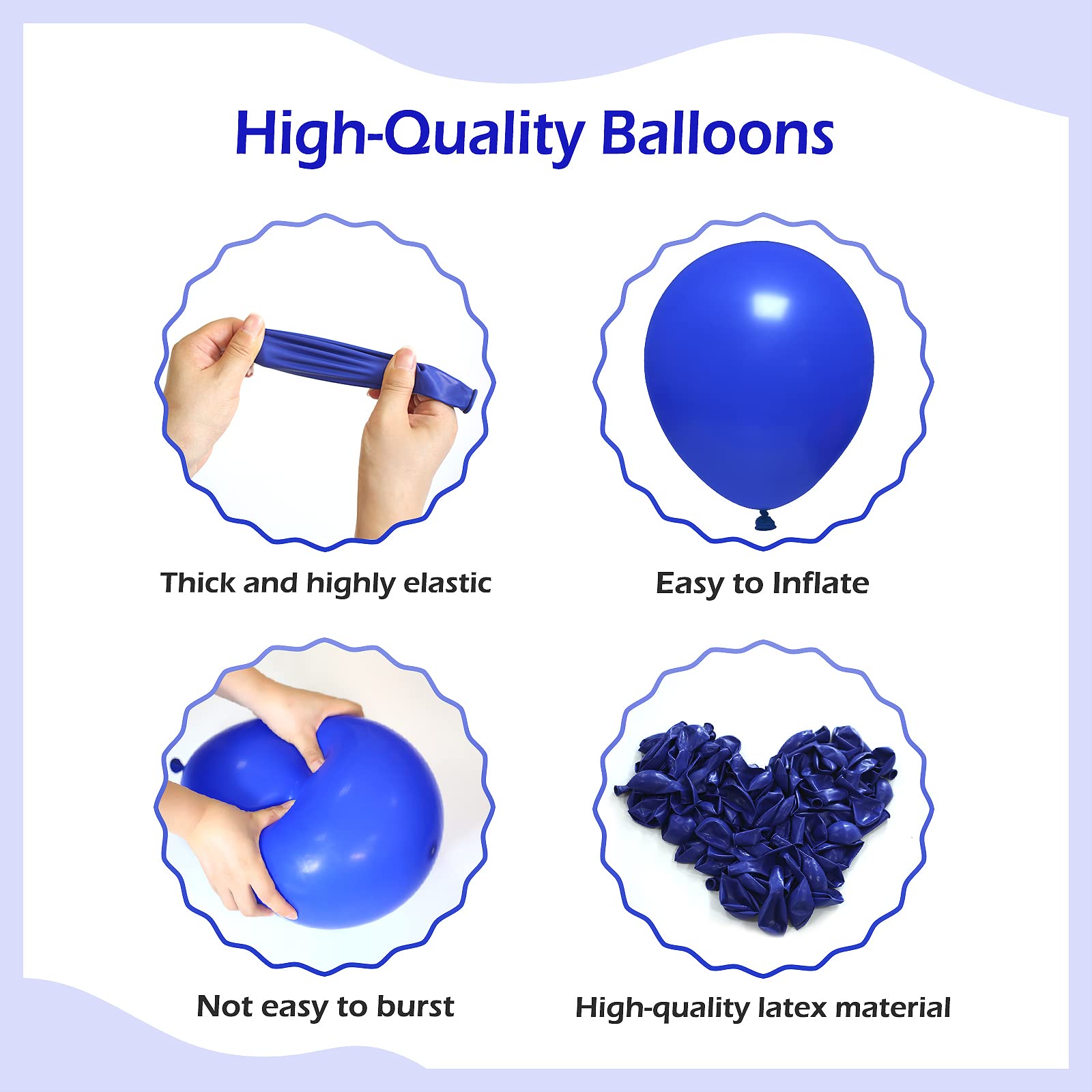 - Great Quality: The royal blue party decorations are made of great quality latex, which is thick long-lasting and not easy to pop. The balloons can be filled with air or helium, which can last for a long time
