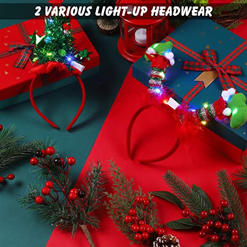 Fovths 2 Pack Christmas LED Headbands Xmas Headbands Light Up Costume Headwear Accessories Glowing Hair Hoop for Christmas