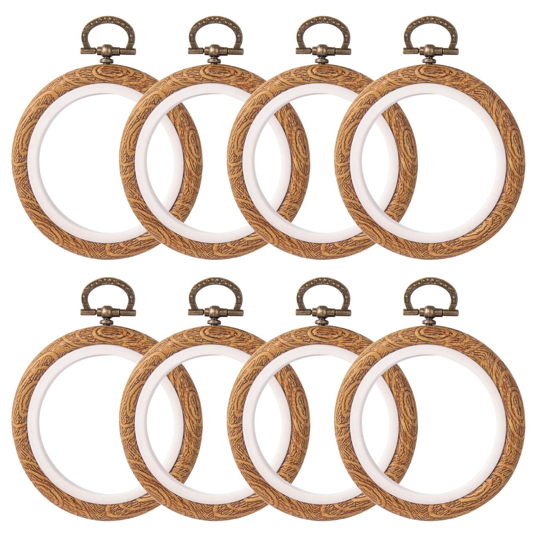 8 Pack Round Mini Embroidery Hoops 3 Inch Imitated Wood Display Frame Circle Cross Stitch Hoop Ring for Art Craft Sewing Hanging Ornaments