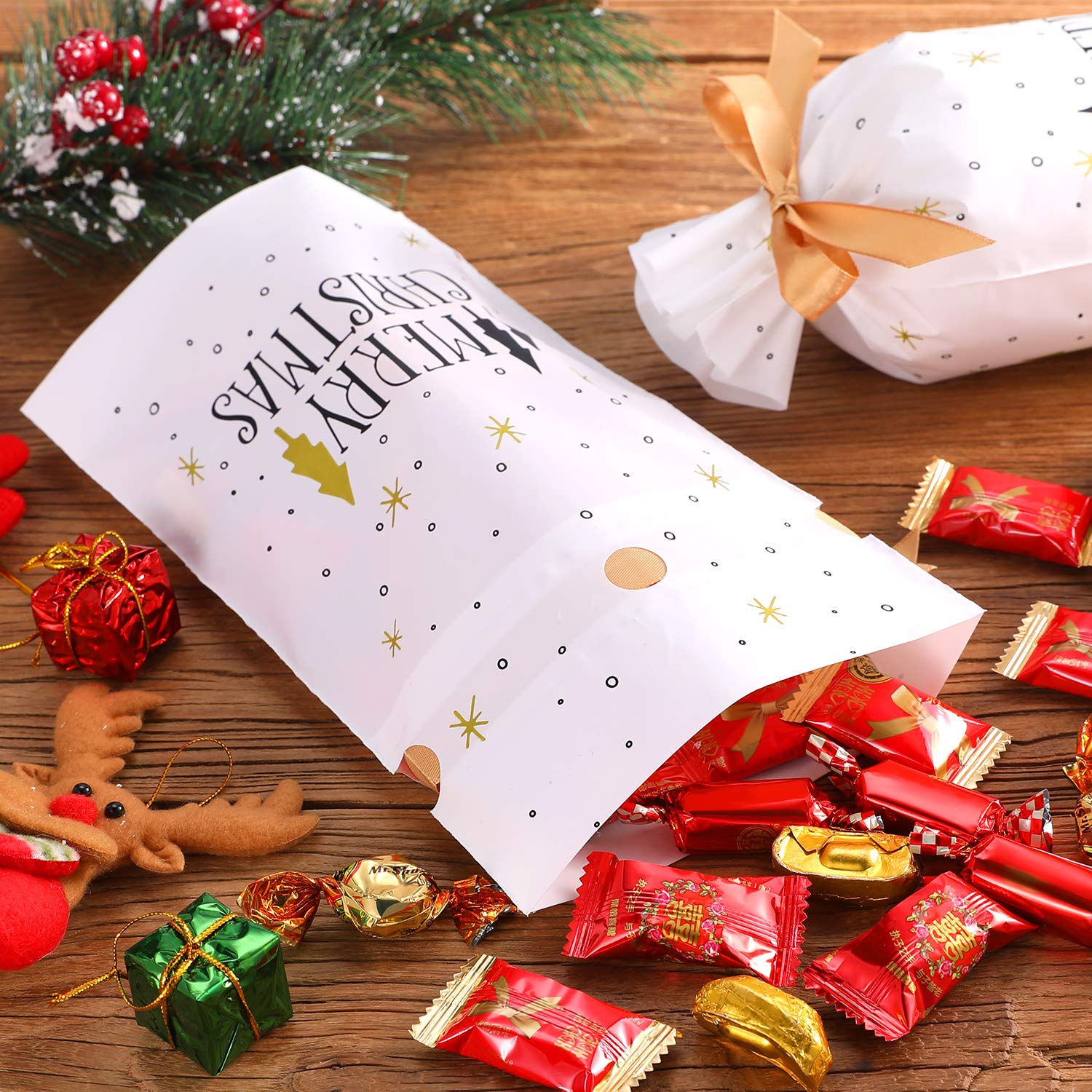 - Multiple Uses: great for packing bread, cookie, candy, bakery, snacks, popcorn, candy bar, goodies, etc.; Xmas tree print treat not only great for packaging home made cookies, candies, pastries, doughnut, but also fit for gift