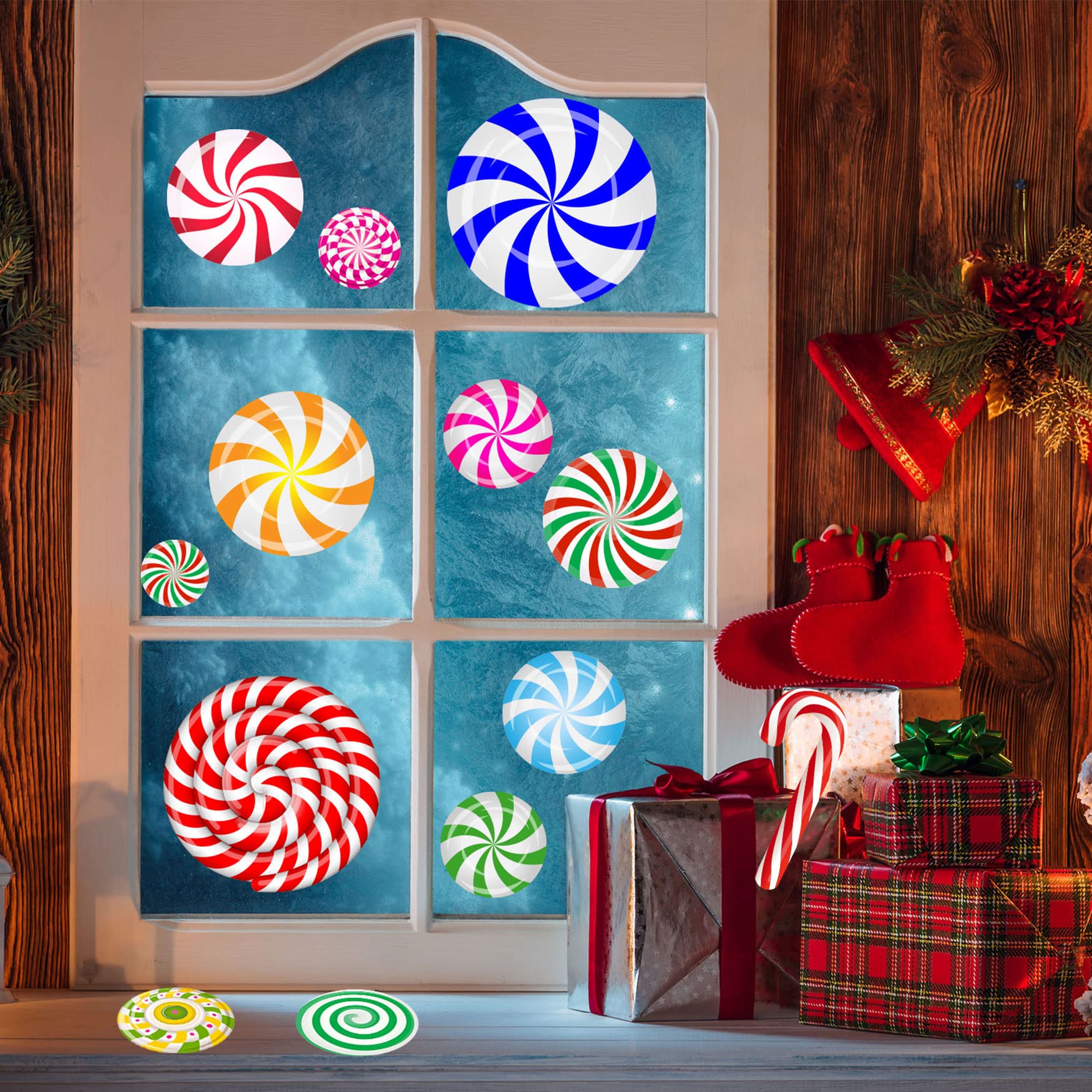 - 【3D FLOOR CHRISTMAS STICKERS DESIGN,HIGH CHRISTMAS DECALS FOR WALL MATERIALS】 Peppermint decorations are made of self-adhesive plastic material with vibrant colors, Eco-friendly Ink and durable.Look professional,Wonderfully printed and precision cut. 3D effect pattern is more lively and realistic. Well packaged, the edges will not be bent or damaged at all.