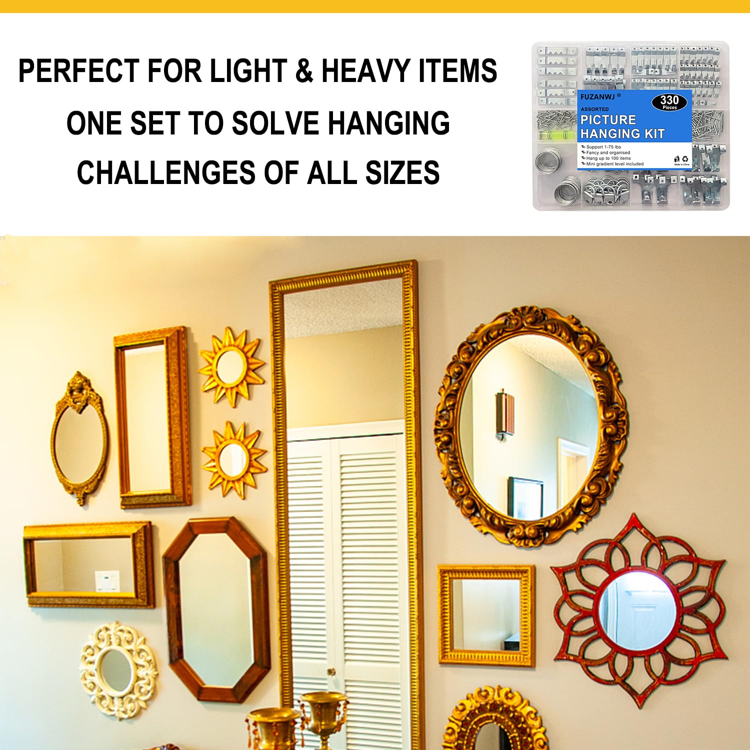 330pc Picture Hanging Kit - Wall Hangers, Nails, Wire, Screw Eyes, D Rings & Tool for Frame & Canvas Mounting