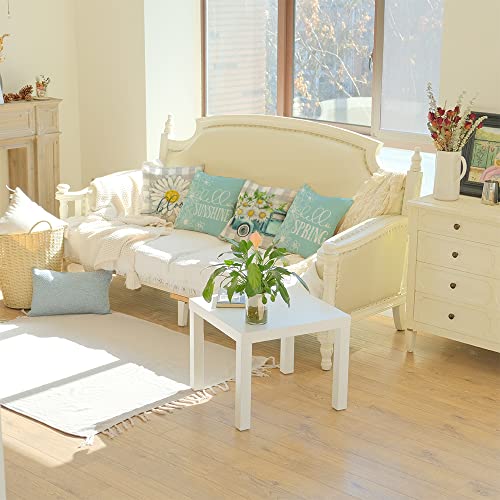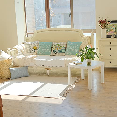 GEEORY Pillow Covers 18x18 Set of 4 Buffalo Plaid Daisy Truck Bloom Hello Sunshine Spring Pillows Decorative Throw Pillows Light Blue Pillowcase Spring Decorations Farmhouse Decor for Couch Sofa
