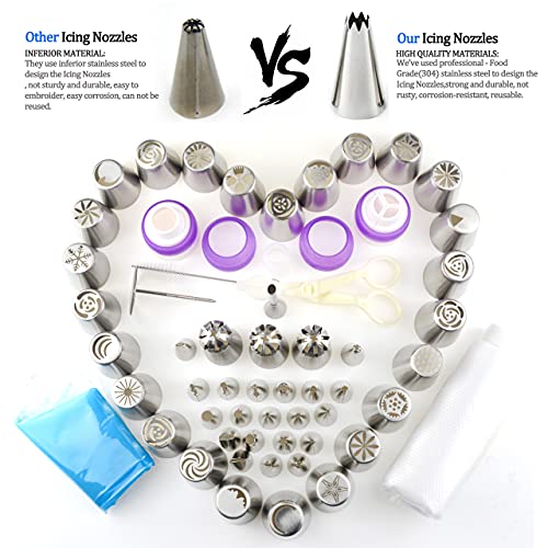 - ★ QUALITY IS OUR GOLDEN RULE: We've used professional - Food Grade stainless steel to design the russian piping tips, one batch forming, giving them durability that is unmatched. They never rust, BPA-Free, have a seamless build for added sturdiness, are dishwasher safe, and handle stiff icing without ever losing shape.