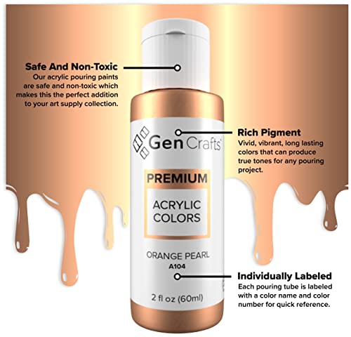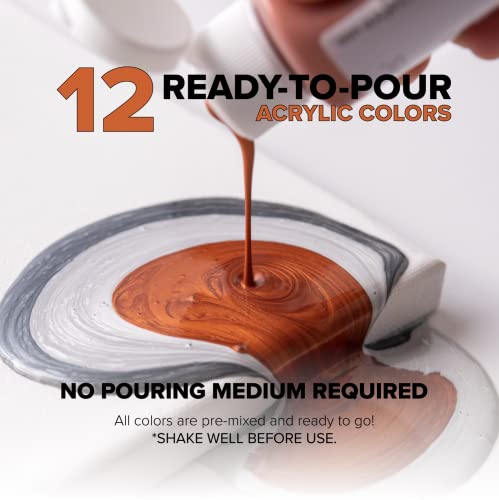 GenCrafts Metallic Acrylic Pouring Paint Set of 12 Metallic Colors - Pre-Mixed High Flow & Ready to Pour - 2 oz./59 ml Bottles - Multi-Purpose Paints for Canvas & Paper, Rocks, Wood