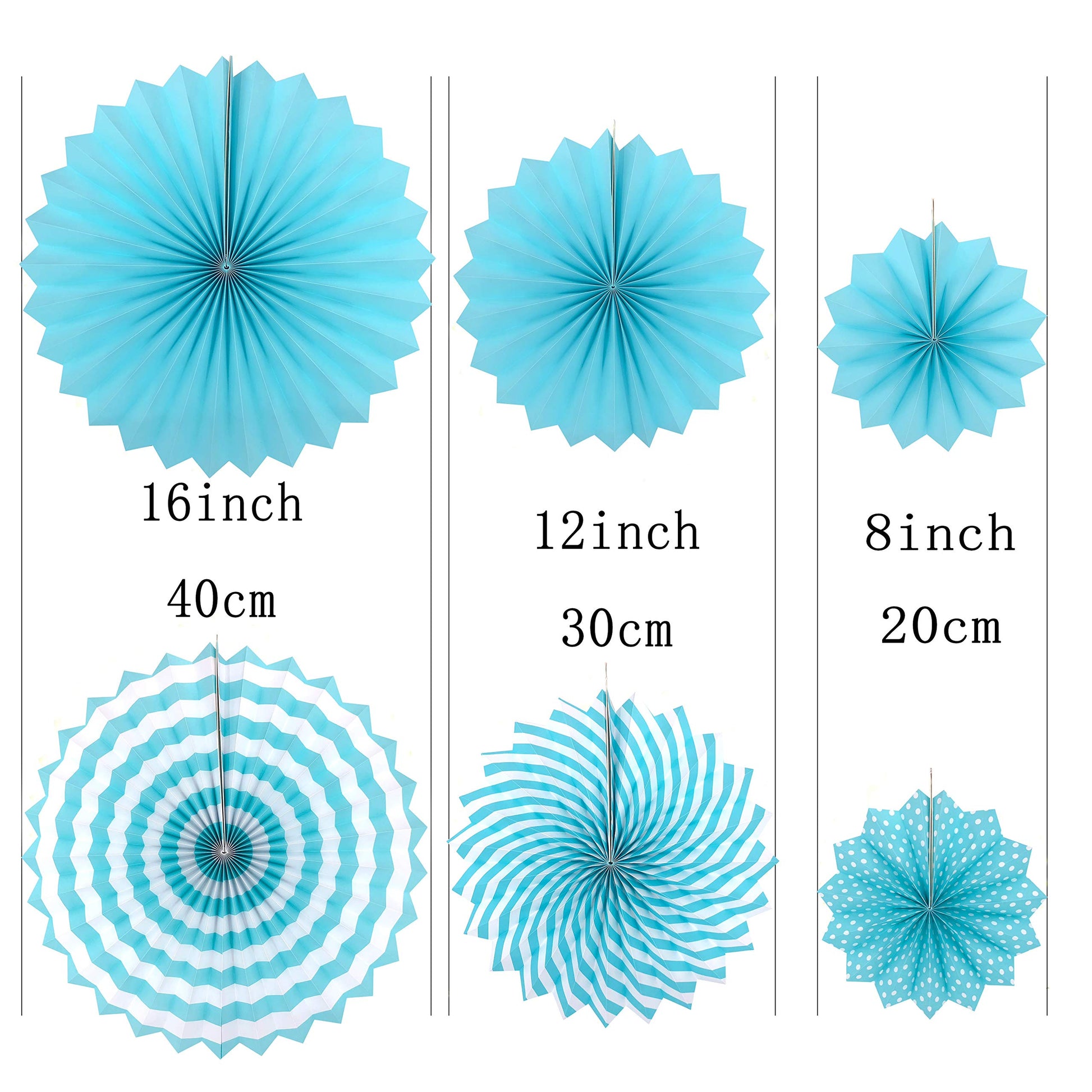 - Baby Gender Revel Baby Shower Party Hanging Paper Fans Decorations measuring 16 inch*4/ 12 inch*4/ 8 inch*4,12 pieces in total