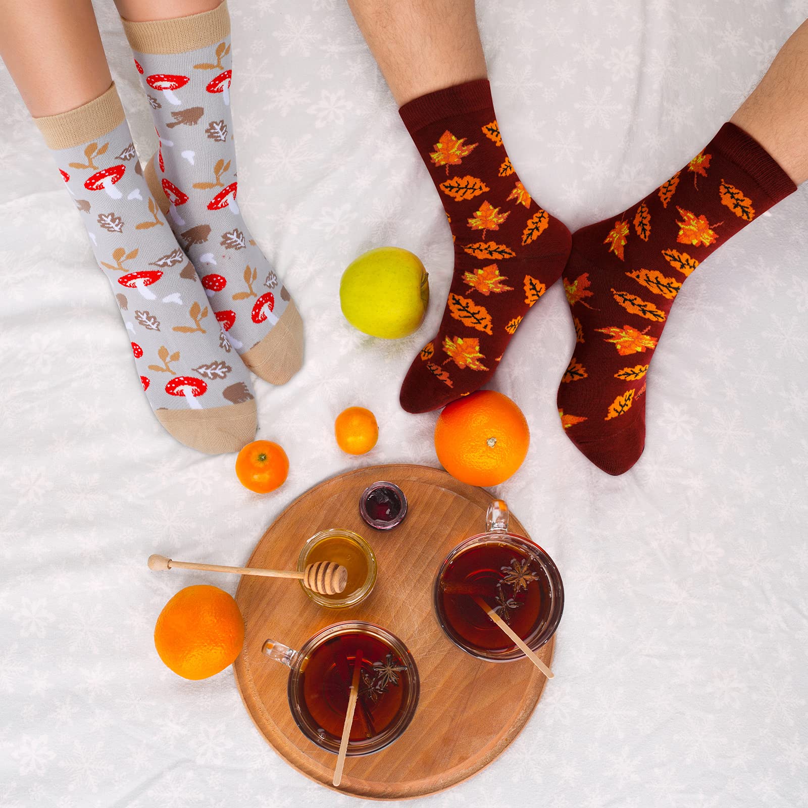 - Thanksgiving theme design: our novelty crew socks feature vivid patterns of turkey, maple leaf, pumpkin, mushroom etc.; These classic patterns are essential elements of Thanksgiving catering to the theme of Thanksgiving Day and enhancing the joyful atmosphere