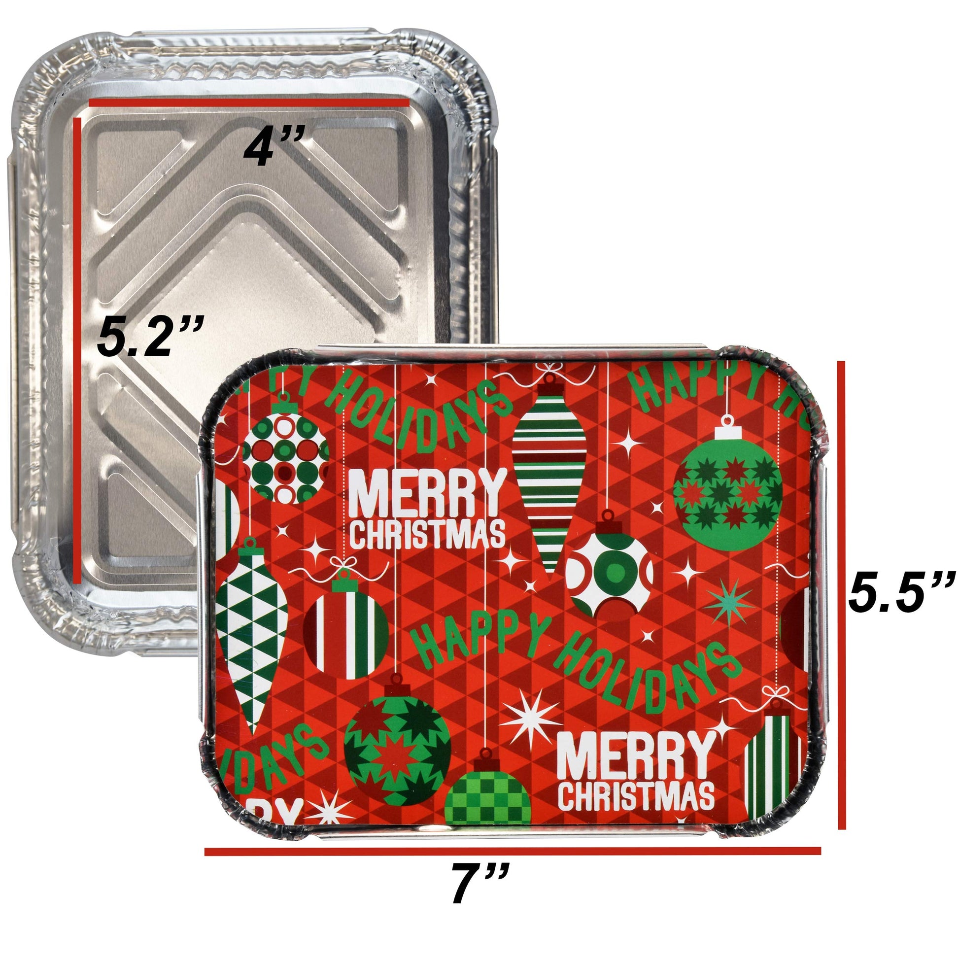 36 Count Christmas Tin Foil Containers with Lid Covers For Cookies in 3 Holiday Designs Aluminum Disposable Food Storage Pans For Treat Exchange & Goody Party Leftovers 5"W X 7"L X 1.5"