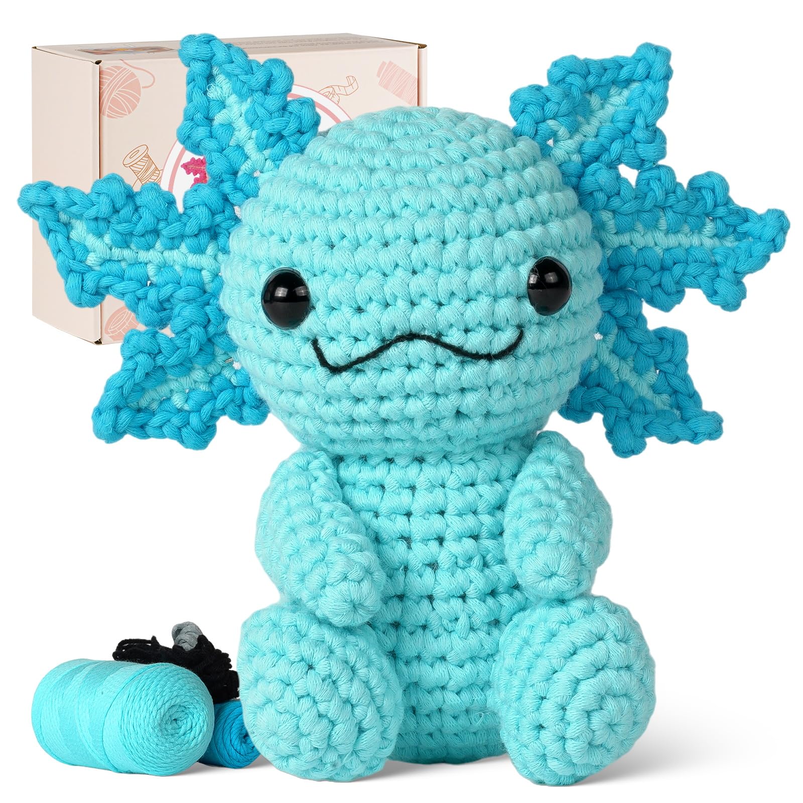 Crochet Kit for Beginners, Crochet Animal Kits, Amigurumi Crocheting Kit for Starters with Step-by-Step Video Tutorials, Beginner Crochet Kit for Adults (1Pack Blue Axolotl)