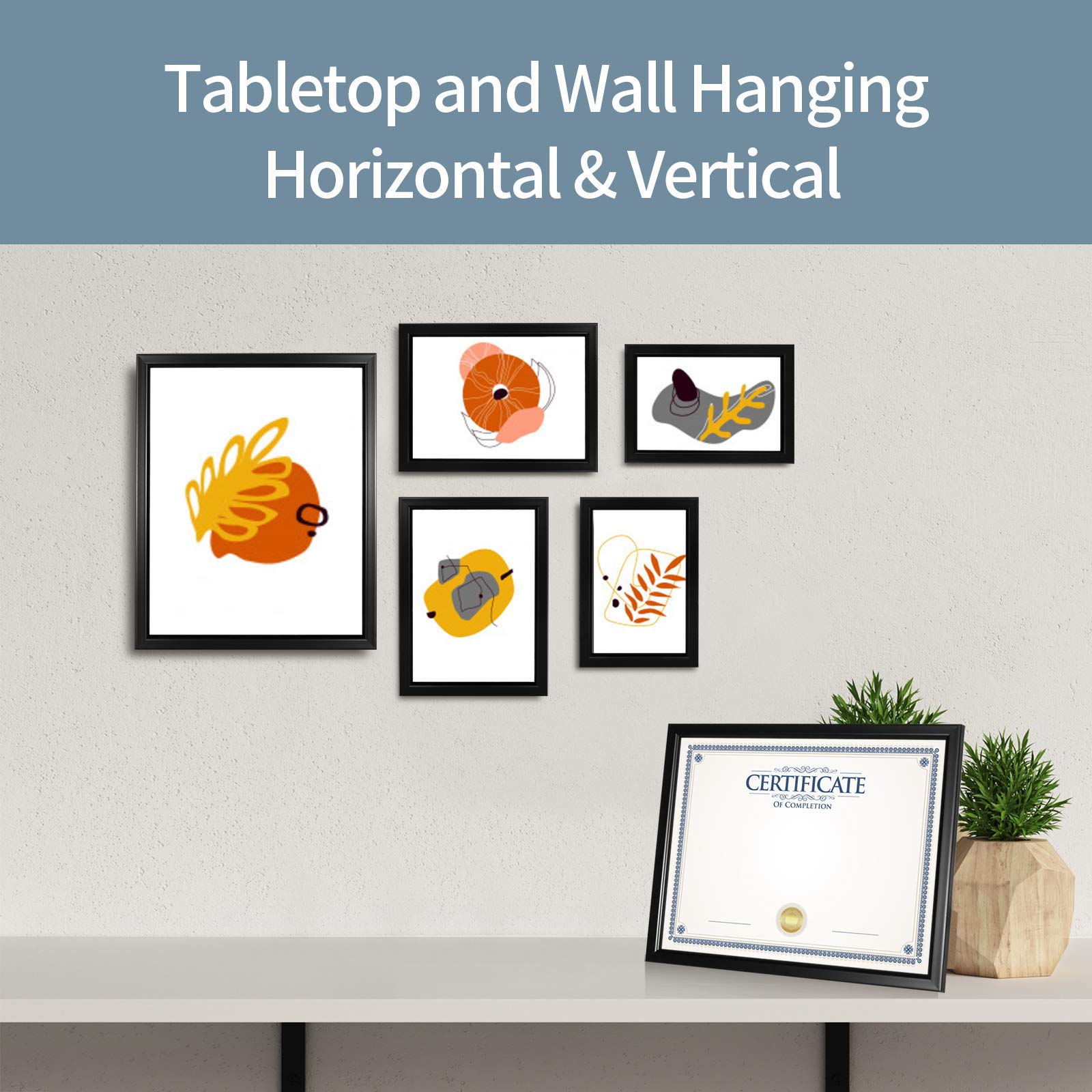 - WALL MOUNTING & TABLE DISPLAYING: Hang picture frames black on the wall or place them on the table. 8x10 frame for picture has two hooks and one bracket on the back for you to display vertically and horizontally. Easy to design a photo wall. Help you to enrich your office decor and home decor. You can show your precious memories or company culture.