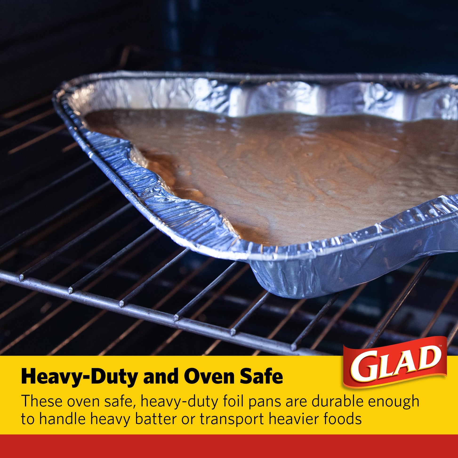 - HEAVY-DUTY AND OVEN SAFE – These oven-safe, heavy-duty foil pans are durable enough to handle heavy batter or transport heavier foods.