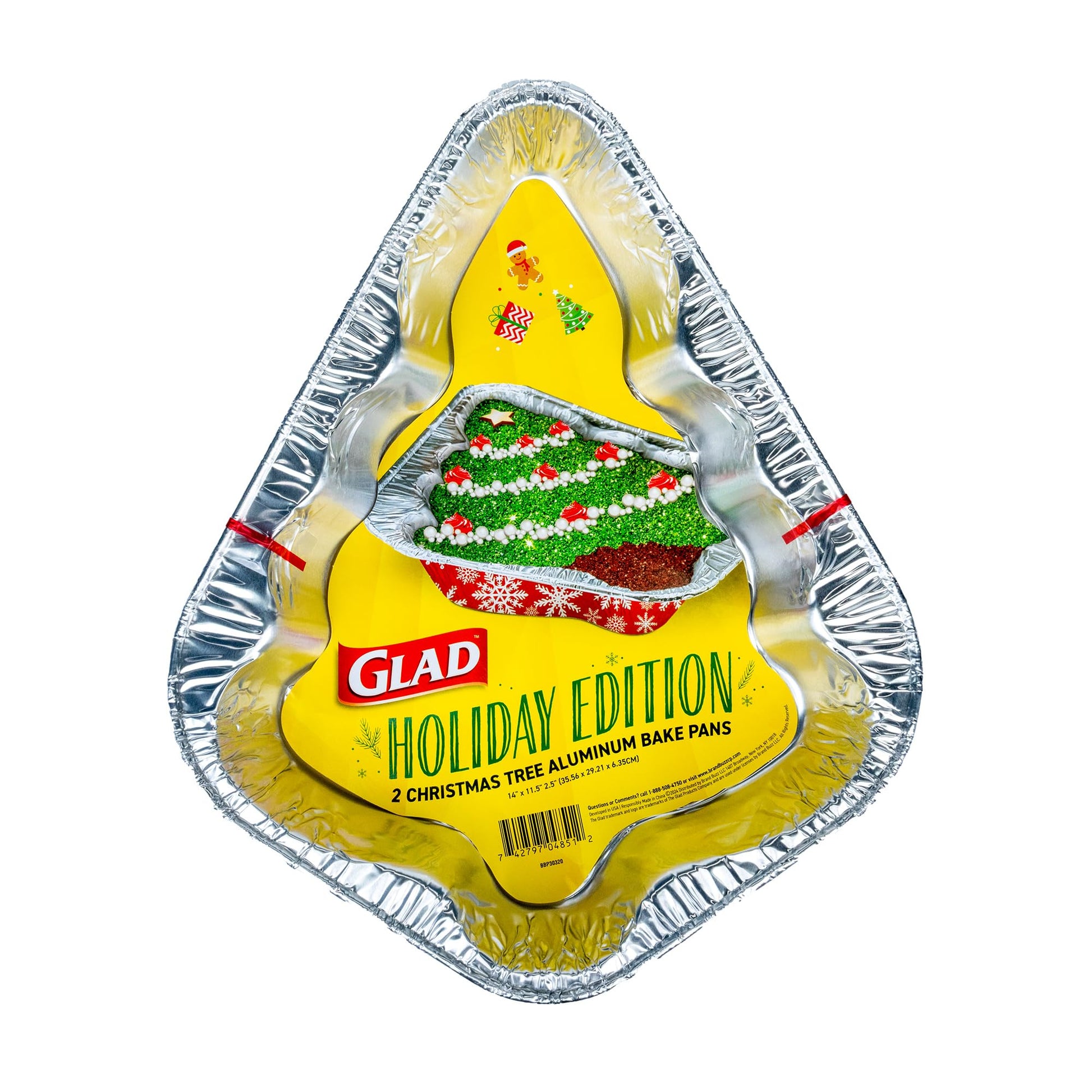 Glad Holiday Edition Christmas Tree Aluminum Bake Pans with Red and White Snowflake Pattern, Disposable Christmas Baking Pans, Christmas Tree Cake Pan, 2 Count