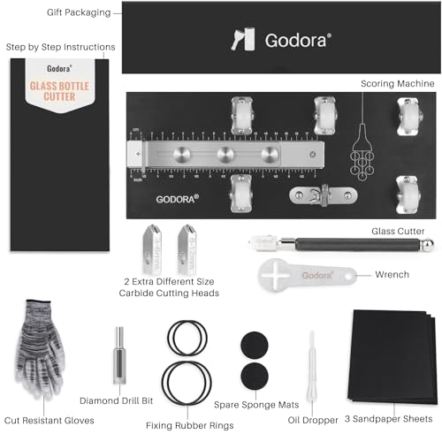 Glass Bottle Cutter, Upgraded Glass Cutter for Bottles & Glass Cutter Bundle - DIY Machine for Cutting Wine, Beer or Soda Round Bottles & Mason Jars, Perfect Score Bottle Cutter