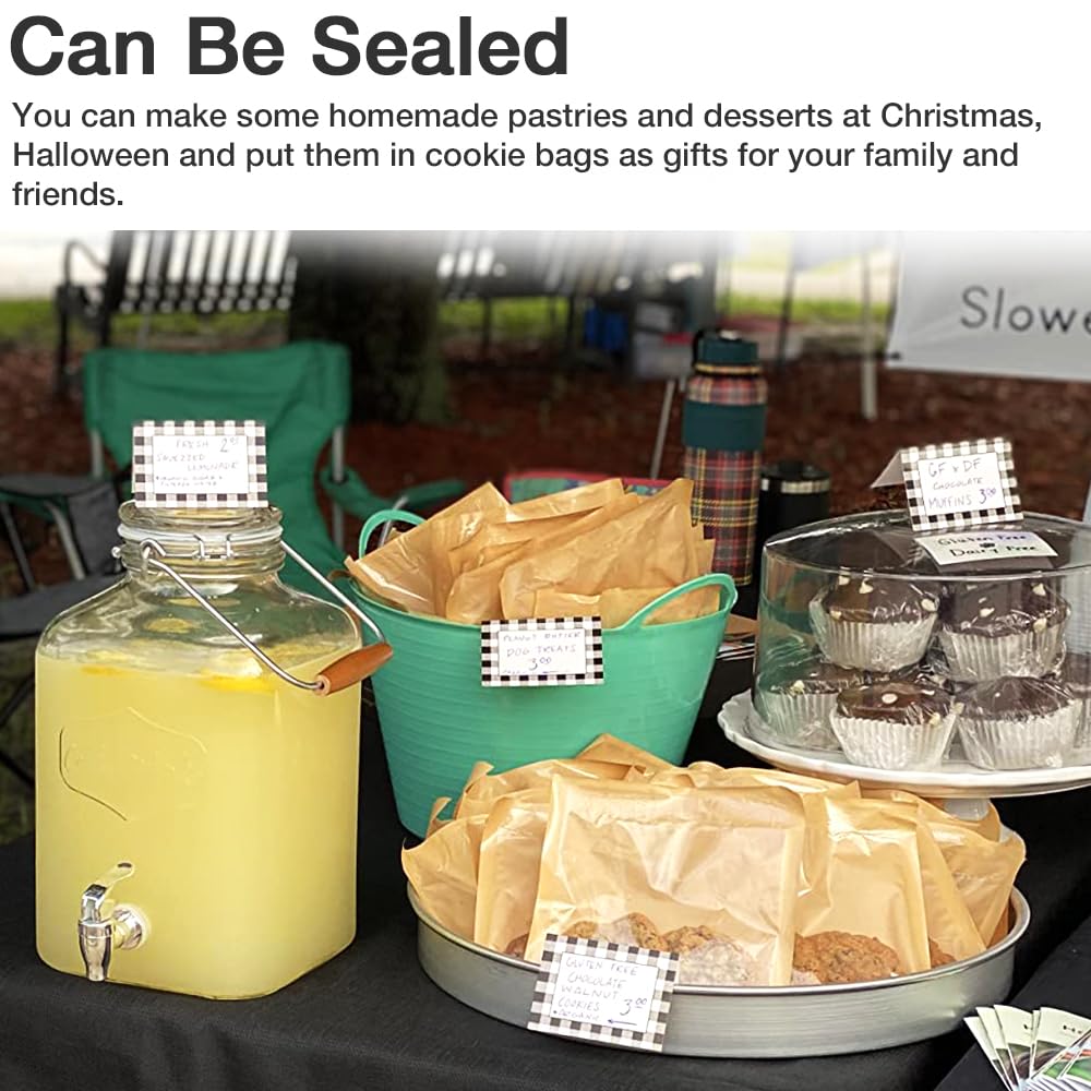- CLEAR WINDOW: The front of the dessert bag is a clear window, from the outside you can see what the bakery packaging contains. Cookie bag paper is good idea to display delicate and beautiful desserts.