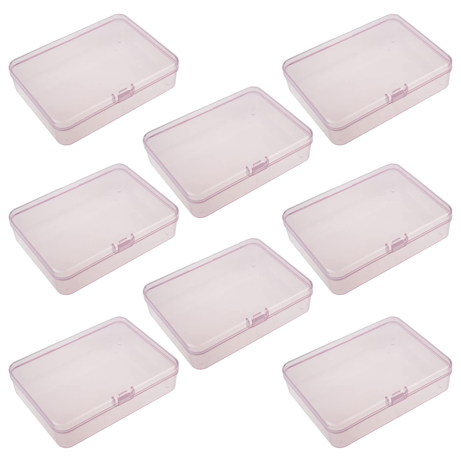 8 Pieces Rectangular Plastic Boxes Empty Storage Organizer Containers with Hinged Lids for Small Items and Other Craft Projects (Pink, 4.5 x 3.3 x 1.1 inch)