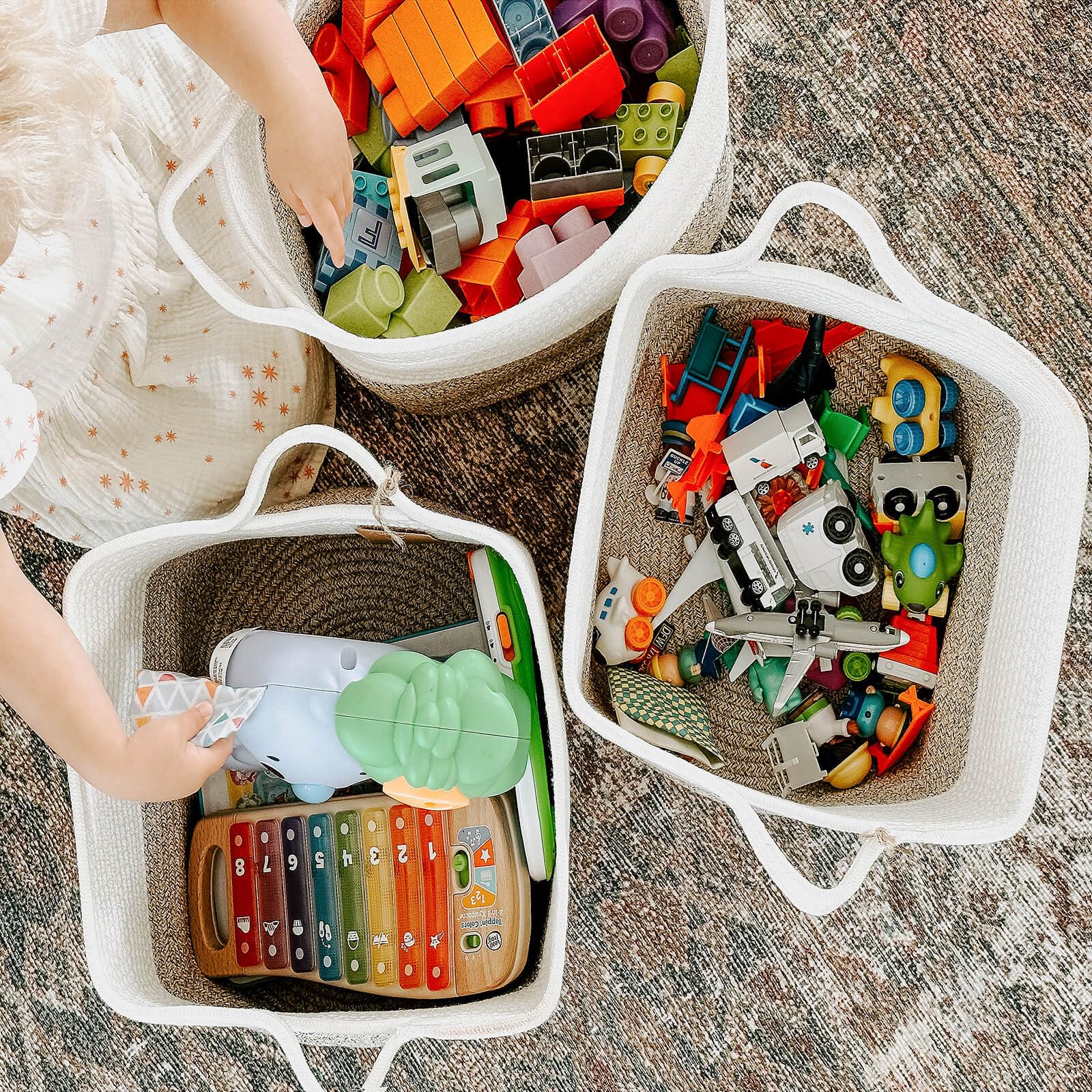- Soft Material. The decorative basket is made of cotton rope with a soft touch, which is perfect for home use, especially for toddlers, babies, children, and pets. It's a smart choice for organizing clothes, toys, stuffed animals, blankets, and even throwing pillows