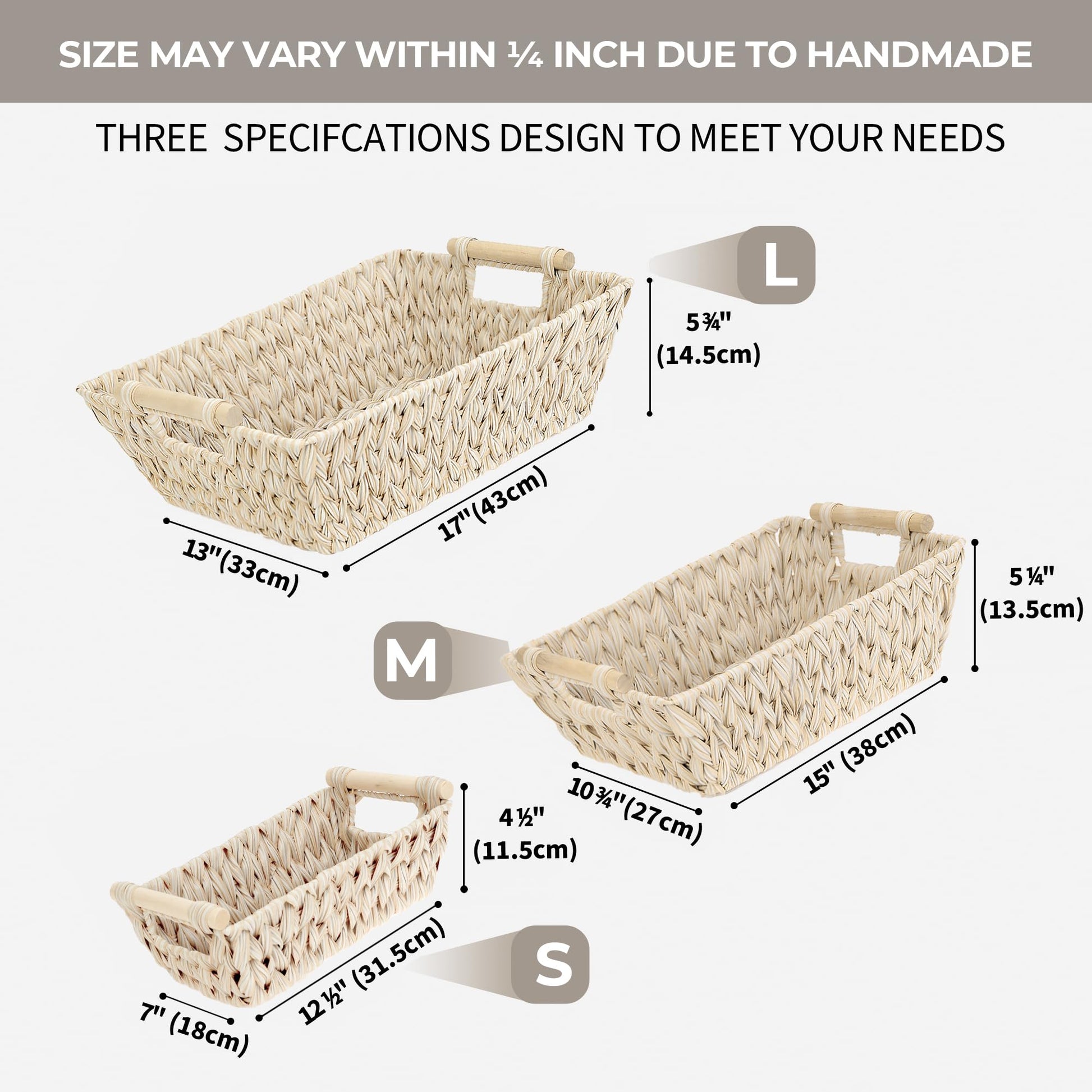 - The woven storage baskets are moisture-proof and can be cleaned by flushing with water, perfect for pantry, home office, and bathroom storage.