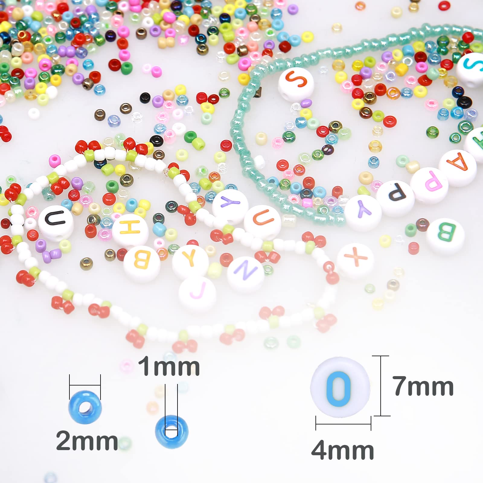 - GREAT SEED BEADS SET CONTAINS: 45000pcs 2mm seed beads for bracelets making in 48 colors with 2 boxes, 260pcs letter beads with 2 styles, 20pcs jump rings, 10pcs charms pendants, 2 rolls of 0.5mm elastic thread