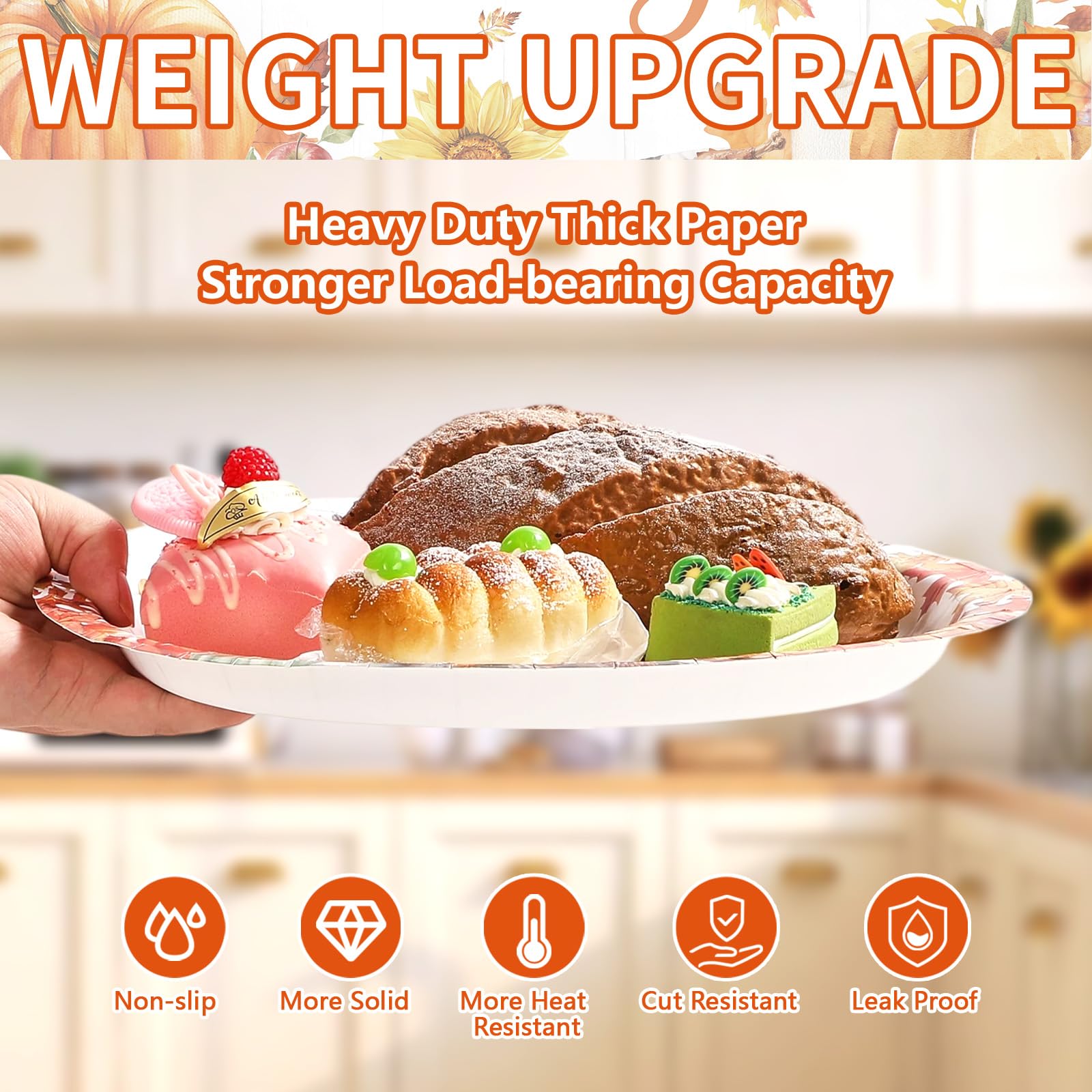 - Large Capacity Set: Package contains 50 pcs fall Friendsgiving disposable oval paper plates, plenty enough to meet your family use and party needs. The enlarged capacity size is about 10" x 12"/25.4 x 30.5cm, which can hold more food and provide plenty of space for your delicious treats. They are perfect for serving cakes, snacks and other types of hearty dinners