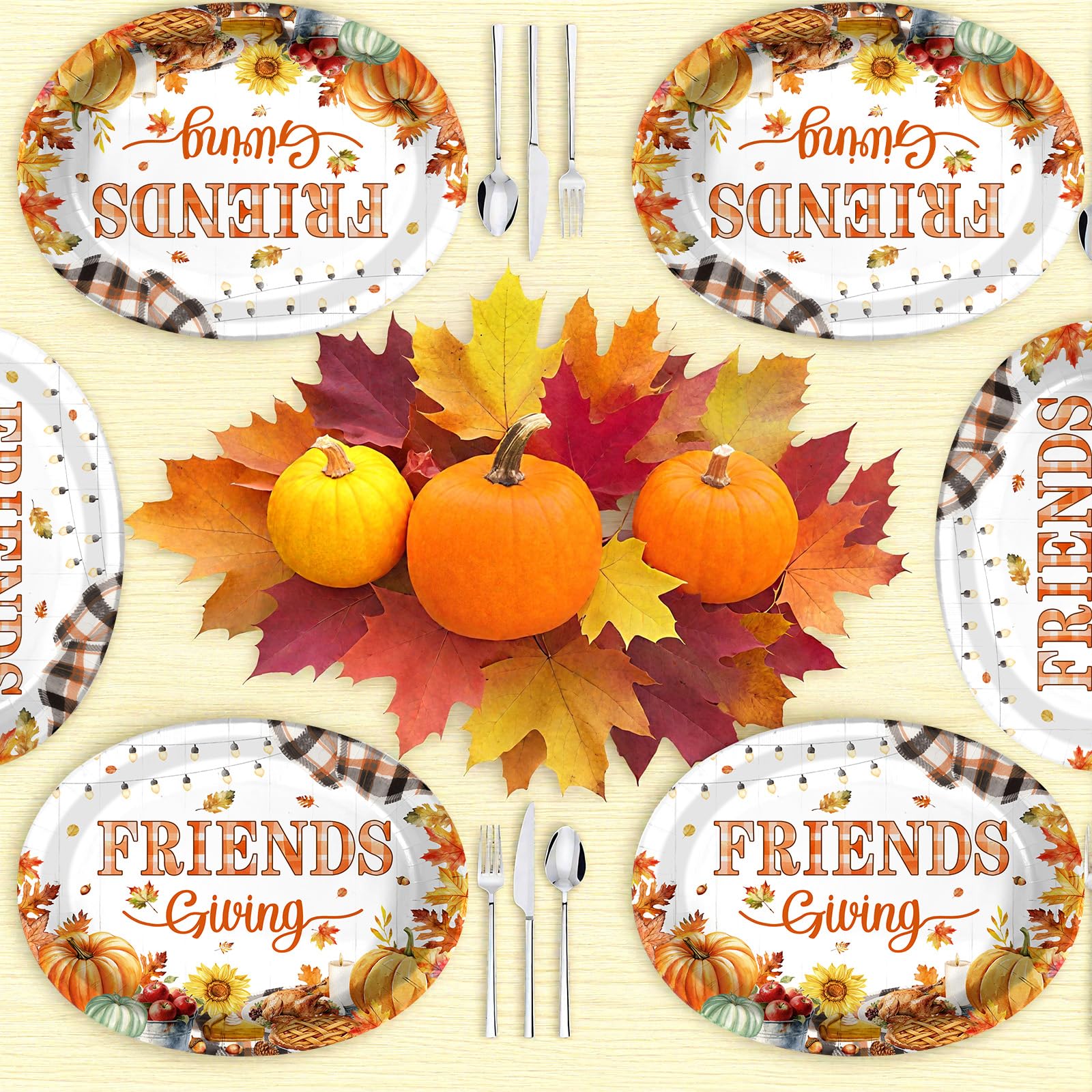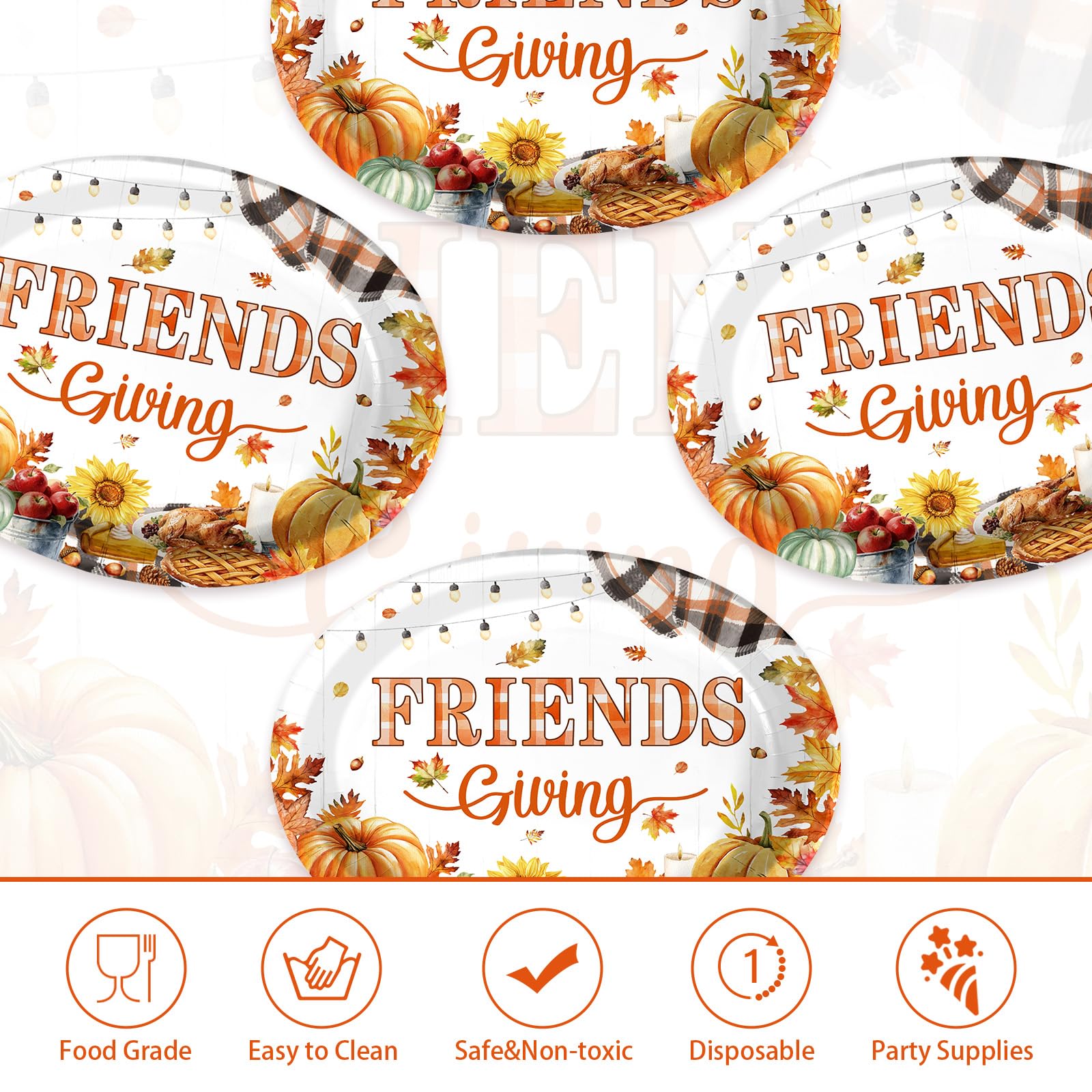 - Exquisite Friendsgiving Picnic Theme Design: Our autumn Friendsgiving paper plates feature a “FRIENDS Giving” theme, patterned with pumpkins, sunflowers, pies and autumn leaves, creating a warm, cozy and picnic like festive vibe, embodying the essence of the fall Friendsgiving theme.