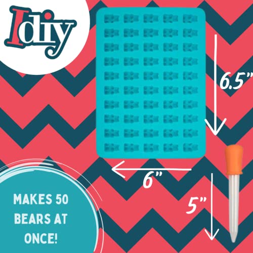 Details: Gummy Bear and Worm Gummy Candy Molds, 4 Pack Set - XL Nonstick Trays with 2 Droppers for Chocolate, Ice Cubes and More - Makes 140 Candies