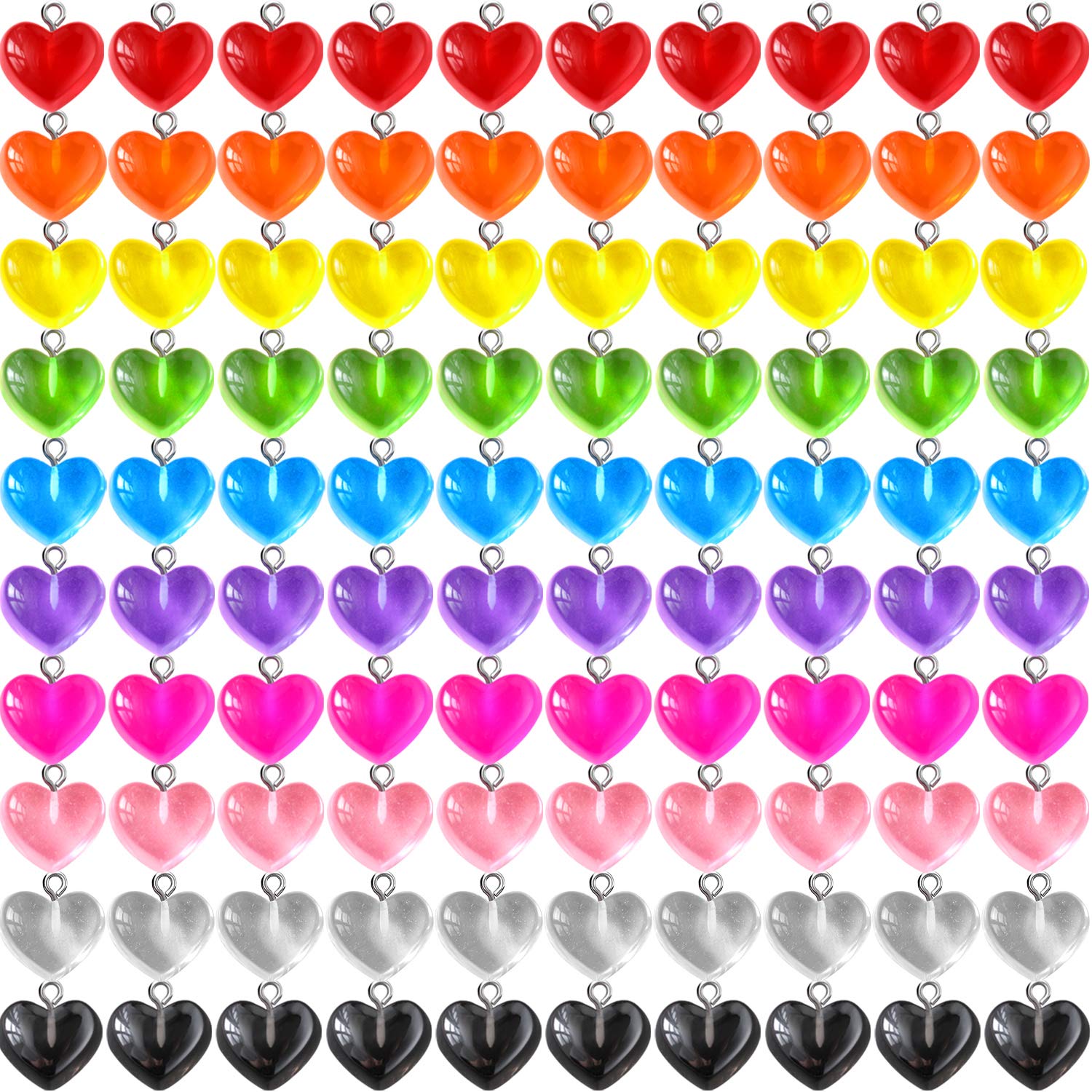 - Package content: totally 50 pieces of colorful resin heart pendant charms in 10 different colors, 5 pieces for each color, enough quantity for you to use or replace for different crafts projects