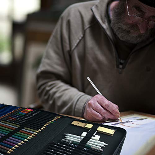Details: PACKAGE CONTAINS: 12 Sketch Drawing Pencils: 5h / 4h / 3h / 2h / Hb / b / 2b / 3b / 4b / 5b / 6b / 8b 12 Oil Based Colored Pencils: Black, Brown, Light-brown, Dark blue, Purple, Green, Light Green, Blue, Orange, Red, Yellow, Pink 12 Watercolor Pencils: Yellow, Pink, Red, Orange, Blue, Light green, Green, Light Violet, Purple, Dark blue, Brown, Black 12 Metallic Colored Pencils: Black, Brown, Blue, Violet, Lavender, Indigo, Light green, Green, Olive, Orange, Silver, Gold 12 Charcoal Pencils: 4pcs soft charcoal pencils, 4pcs medium charcoal pencils, 4pcs hard charcoal 1pcs White Sketch Charcoal Pencil1 A5 sketch pad 1 sandpaper pencil pointer 1 double-headed pencil extender 1 paintbrush 1 eraser 3 paper blending stumps 1 2-hole sharpener 1 dual tip brush marker 1 zip-up folding case