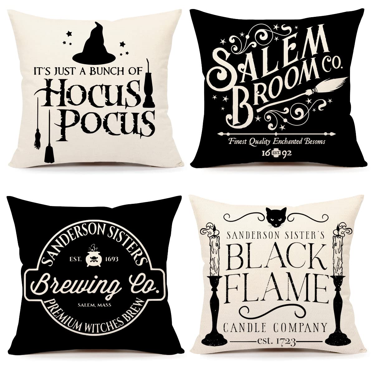 Halloween Decor Pillow Covers 18x18 Set of 4 Halloween Decorations Hocus Pocus Farmhouse Saying White Black Outdoor Fall Pillows Decorative Throw Cushion Case for Home Couch TH118-18